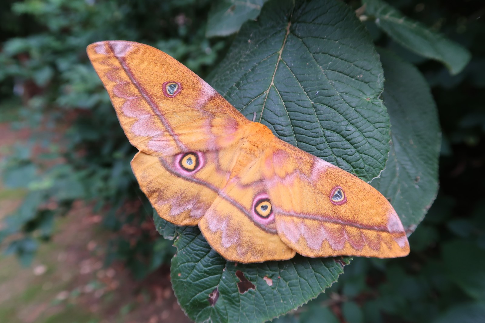 Nudaurelia is a large genus of silkmoths found in Africa, counting over 50 different species (conservative estimate) that come in many interesting shapes and colours. One such species is Nudaurelia dione. These interesting moths have golden yellow males with beautiful pink to purplish markings. Females can be a little bit darker – almost orange, even – and appear to be more strongly marked. It seems to be a common species that covers a vast range in (sub)tropical Africa, and is recorded in over 20 countries. The reason behind this succes could be it’s high degree of polyphagy – not many people have tried to study how many plant species this species uses in the wild, but from the few observations we have it becomes clear that the caterpillars can eat a large variety of distinct plant species and families; this ensures there are food plants available for them in most forests and shrublands.