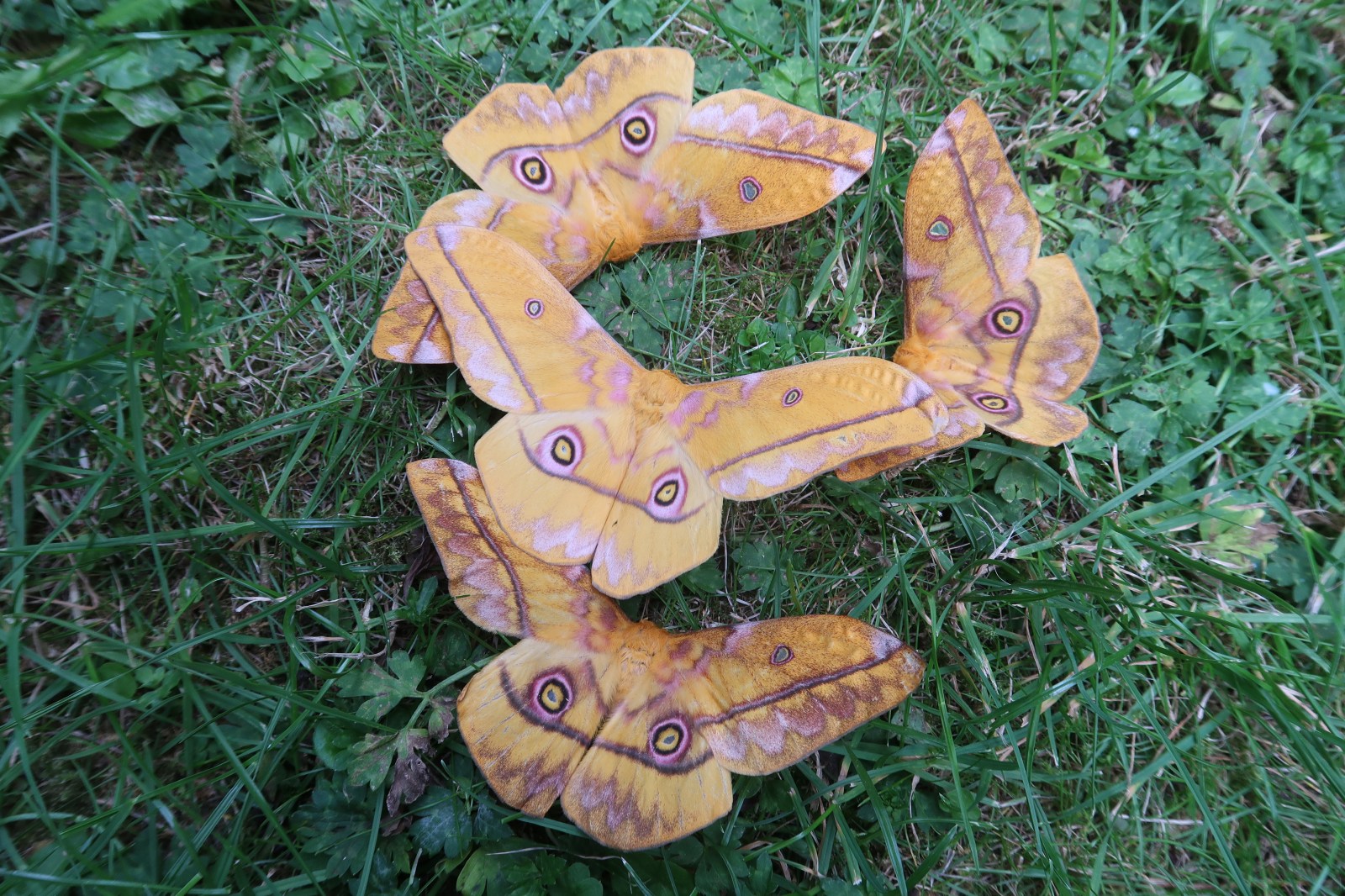 Nudaurelia dione; one male in the middle, surrounded by three females