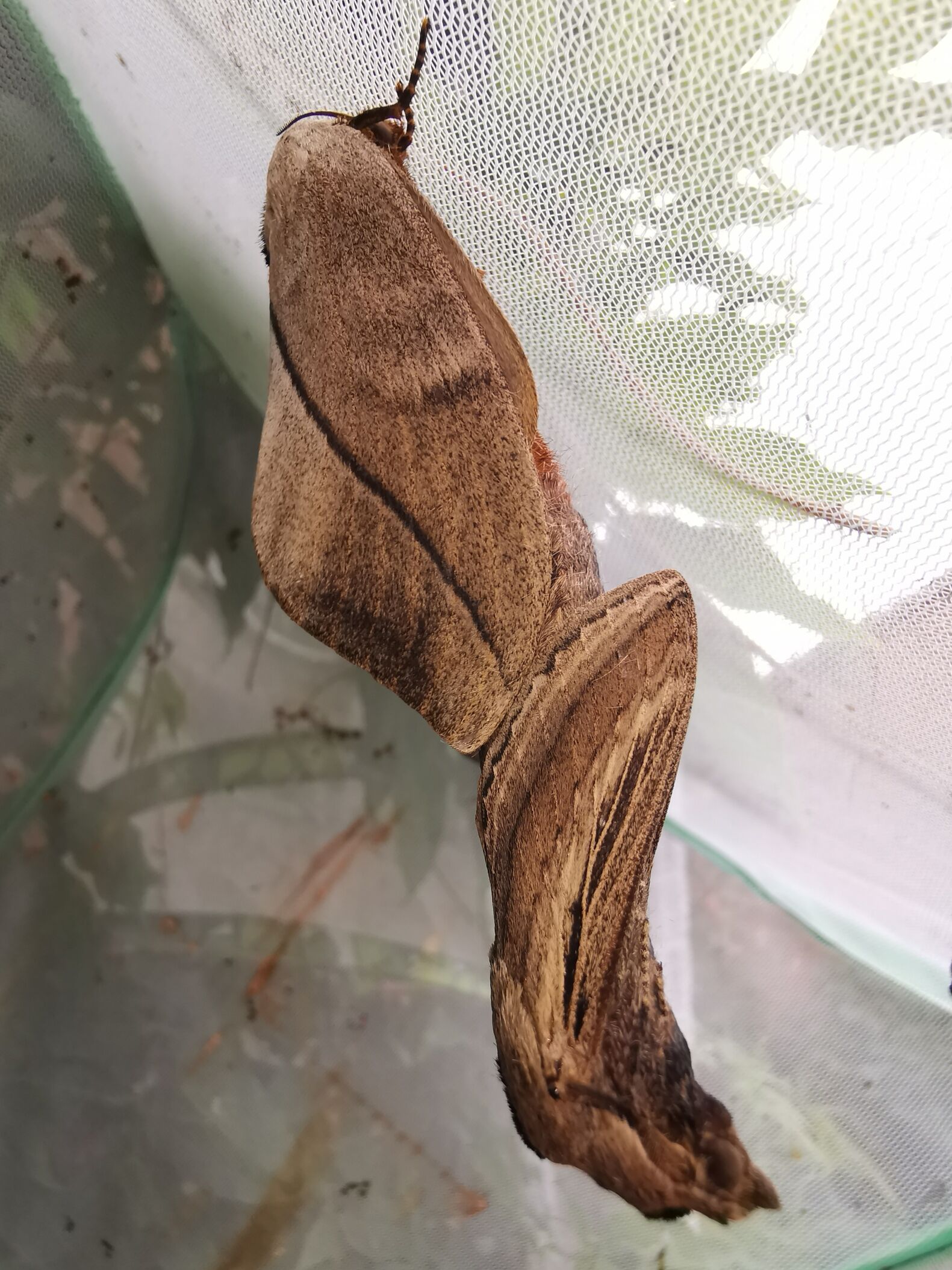 Other than the spiny cocoons, they were easy to handle at all stages. Larvae were explorative and ‘friendly’, rather than those which drop to the floor at the slightest disturbance or spit out the contents of their guts or refuse to move. Adult males that pretend to be dead are far easier to move from cage to cage than the flighty insanity of Actias isis or the flappy nonsense of Antheraea species. Females would dislike being moved, but once their claws were de-tangled from netting they were relaxed and calm to handle. I would certainly recommend!