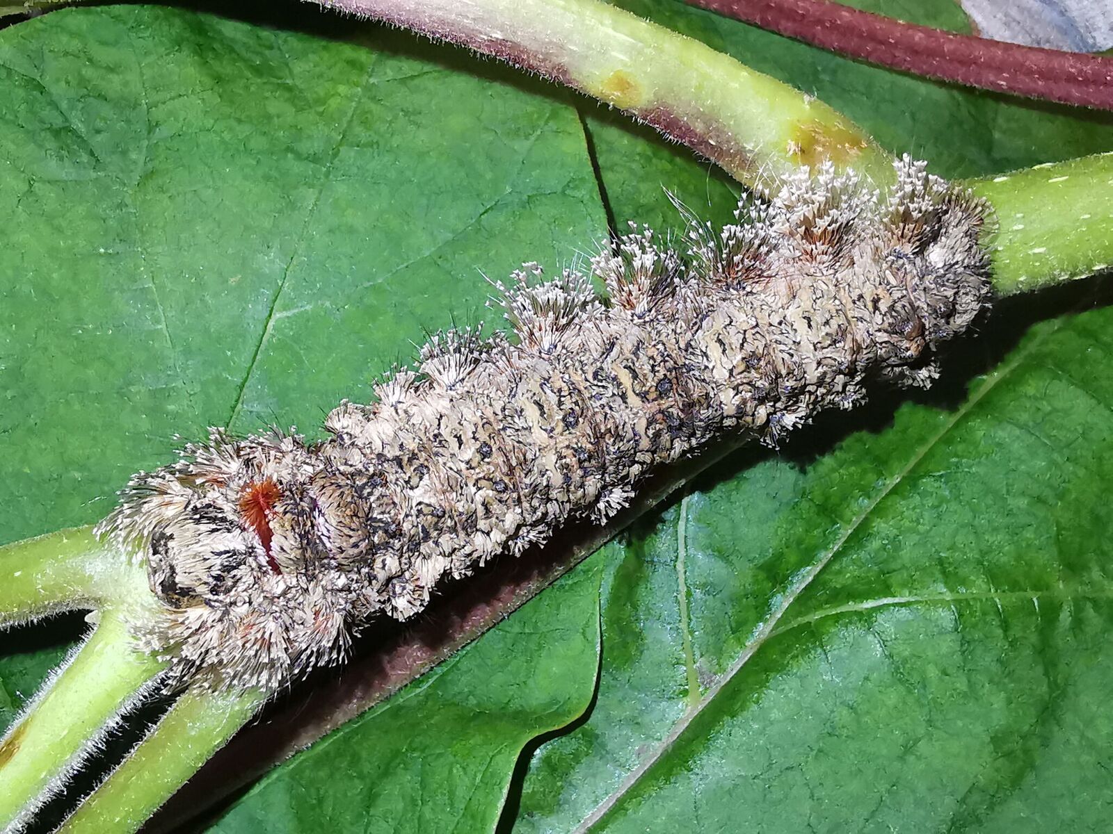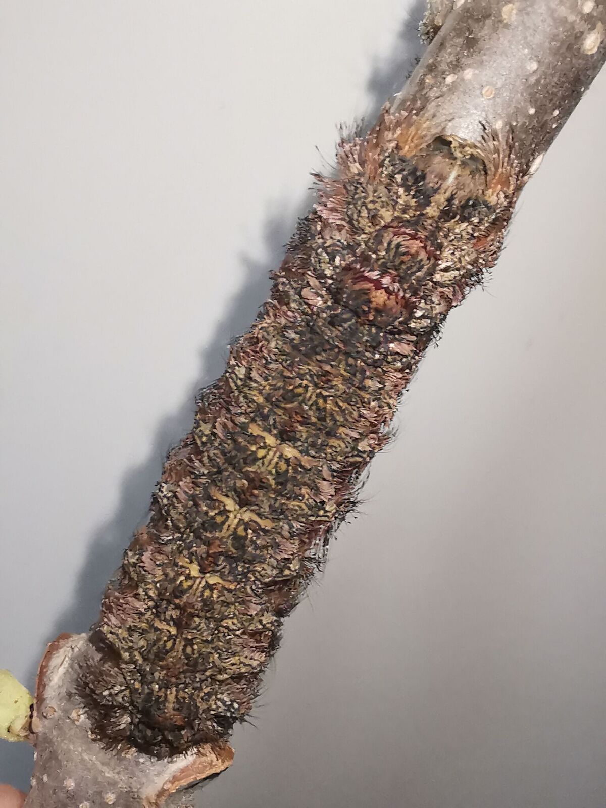 Despite their spines and their behaviours, these larvae were easy to raise and welcomed handling. They were keen to explore new objects, be they sticks, leaves, or human fingers. Their spines were not a worry. They grew to an impressive size, as much as 12cm when relaxed, and perhaps up to 15cm when reaching out at full stretch.