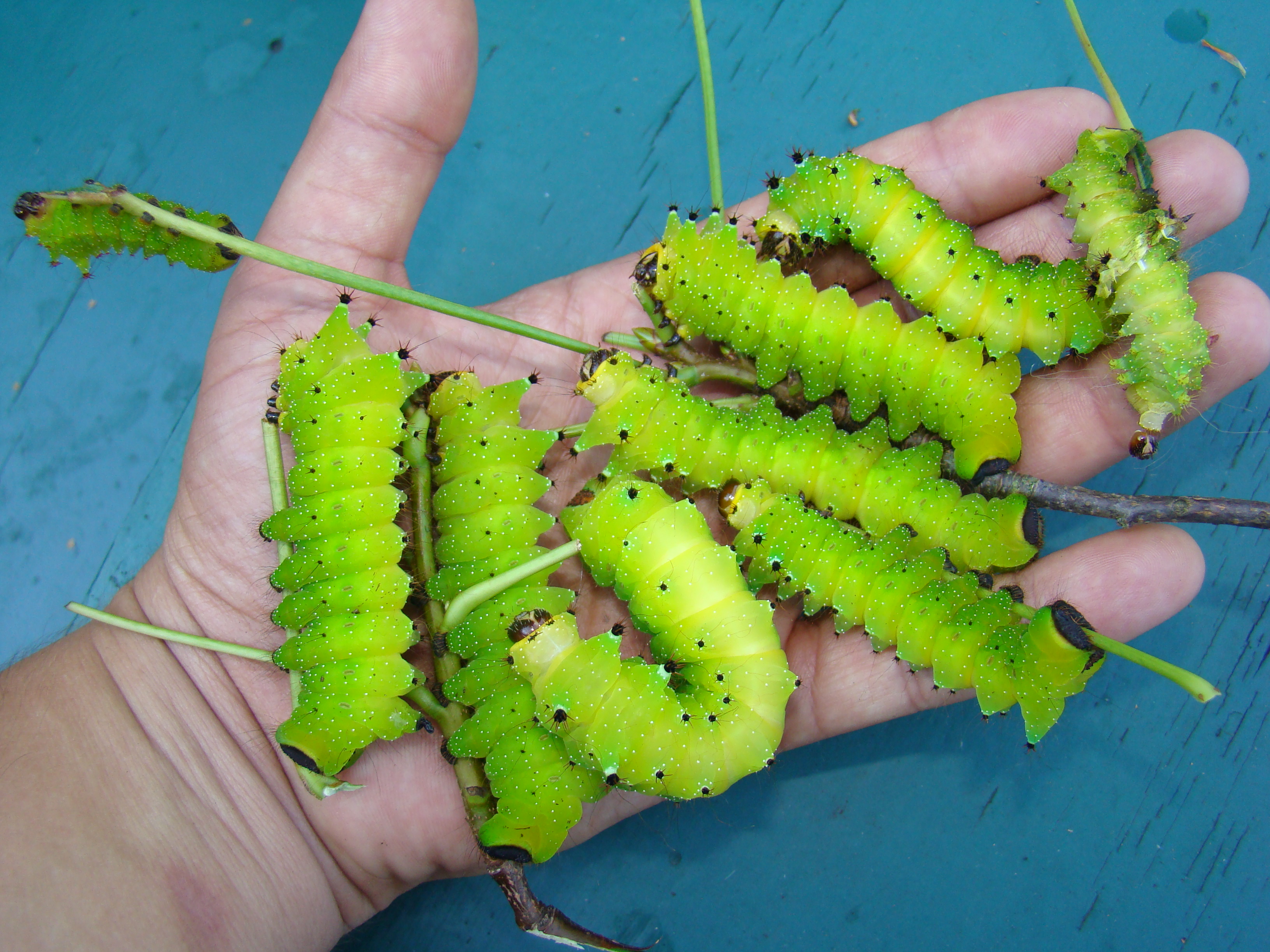 Fat and healthy fully grown caterpillars of Actias isis, reared on Liquidambar