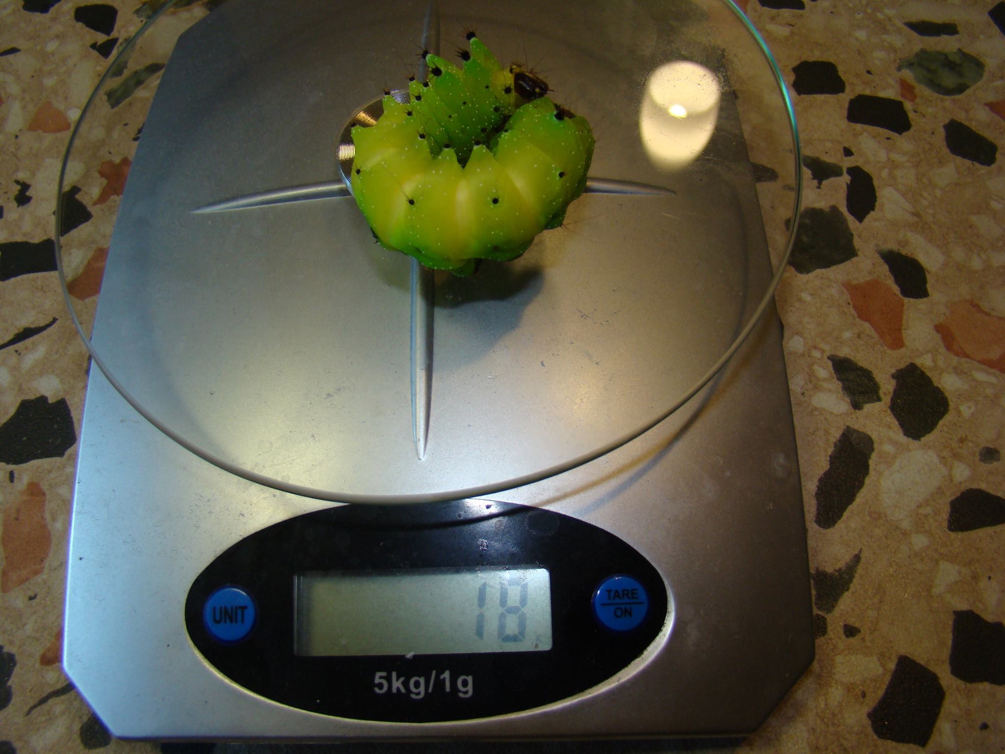 The larvae of this species can grow reasonably big and weigh around 15 to 20 grams before cocooning (personal observation; not representative for the situation in the wild).