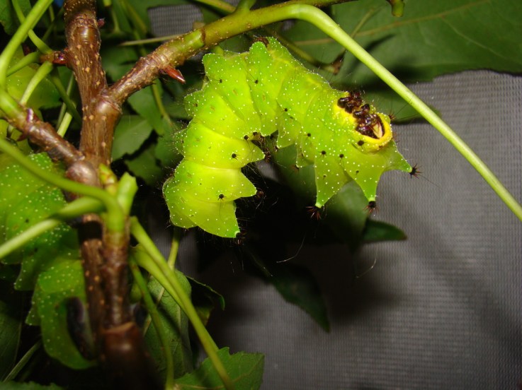 First of all, they do accept a wide range of host plant. For the best results, I recommend using Liquidambar (Amber tree) or Eucalyptus – this years optimum result with the biggest adults and lowest mortality. They are also able to feed on Prunus lusitanica (Portugese laurel) with mediocre result, resulting in smaller adults and more deaths. They are also known to take Salix (willow), Crataegus (hawthorn), Rosa (rose), Quercus (oak), Ligustrum (privet) with unfavorable results – which means these plants should only be offered if no better options are available. They may cause in all the larva dieing or refusing to feed at all – and if they do, in (small) adults with low vitality or deformities. However, if you have no other options you can try, and in some cases the larvae will still make it to adult moths. I have seen other breeders raise them on hawthorn (Crataegus) and rose (Rosa) with suprisingly good results, resulting in big, healthy larvae and adults that reproduced. However, such good results are difficult to reproduce, and they are more inclined to fail on those plants than not; thus that does not automatically make them good host plants to use. Some strains also seem to tolerate “weird” host plants better than others. It could be that a generation raised on Salix will produce a second generation that is better adapted to feeding on Salix, for example: making them increasingly easier to breed on these alternatives, as they are increasinly modified and adapted to captive breeding due to selective breeding. Last but not least, they are also reported to eat hornbean (Carpinus betulus) and bird cherry (Prunus padus) with mediocre to bad results.