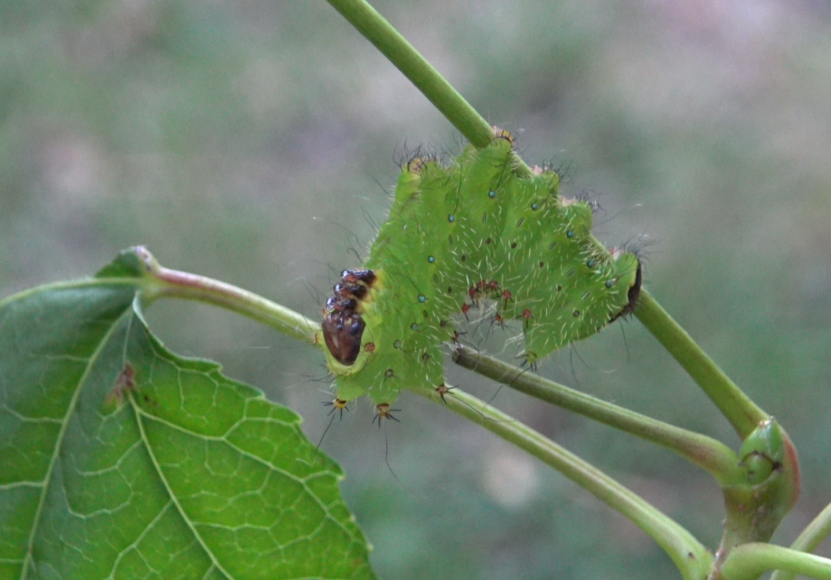 In captivity, this species is rather easy to reproduce. They have swift and continuous generations. If kept warm, the cocoons will never hibernate and develop into moths in 3-5 weeks around room temperature. Larvae are fast-growing; on room temperature they can grow from egg to cocoons in 4-5 weeks, and if kept much hotter, there are even reports of larvae developing from the first instar to cocoons in just 3 weeks time (exceptionally fast for a Saturniidae this size). Pairing them is easy if males and females are put together in an aeriated medium sized pop-up cage on room temperature. The true challenge is hibernation; it’s difficult to overwinter them.