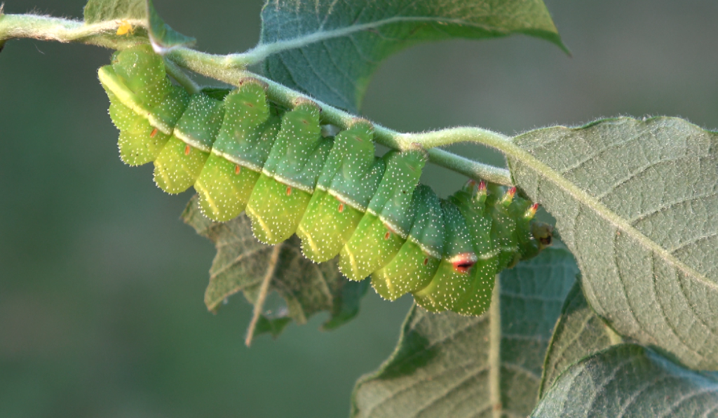 Once the larvae become older, transfer to larger containers with generous ventilation. This species can be raised in plastic boxes quite easily; in fact they seem to prefer it somehow. My guess is that this species likes humidity on the higher end. I prefer to rear them the old fashioned way; on branches of cut food plant standing in fresh water bottles. I’ve had the best results using Quercus (oak), and Salix (willow).