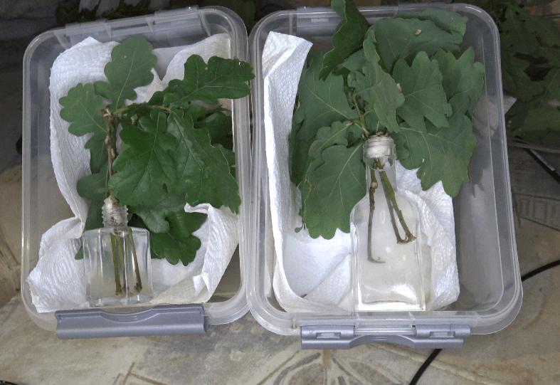In captivity, the species seems to indiscriminately feed on various kinds of Quercus although they showed a strong preference for any oak of the evergreen kind with though, dry leaves.