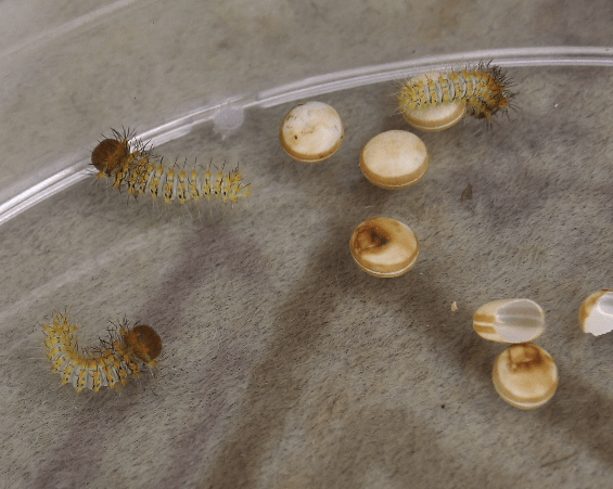 - Difficulty rating: Challenging – This rating means that this species is challenging to breed, and that you will need some advanced experience in order to be succesful. While the moths pair somewhat easily and cocoons are easy too take care of, it’s rearing the larvae that is the tricky part. If you are a beginner, this species is not recommended for you.