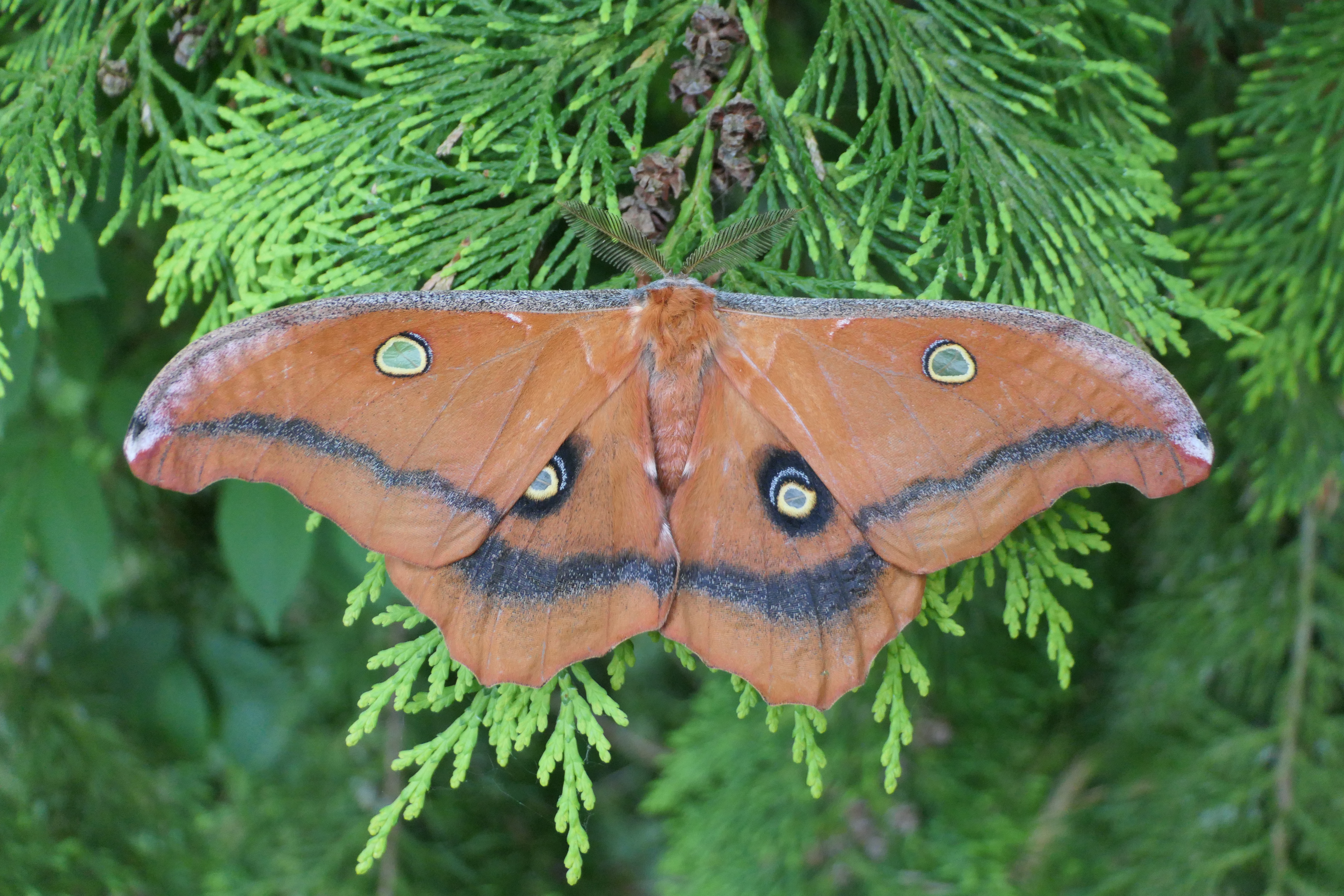 This species appears to exhibit variation; not just when it comes to the wing colour but also the shape of the wings. The ‘scalloped’ wing edge that is typical in this species, seems to be a variable trait. Some individuals have smoother wings that almost come close to Antheraea polyphemus, whereas other individuals have strongly jagged wing edges.