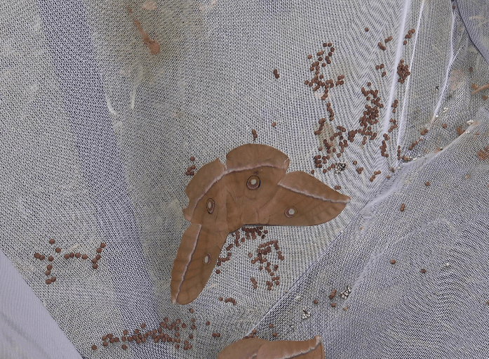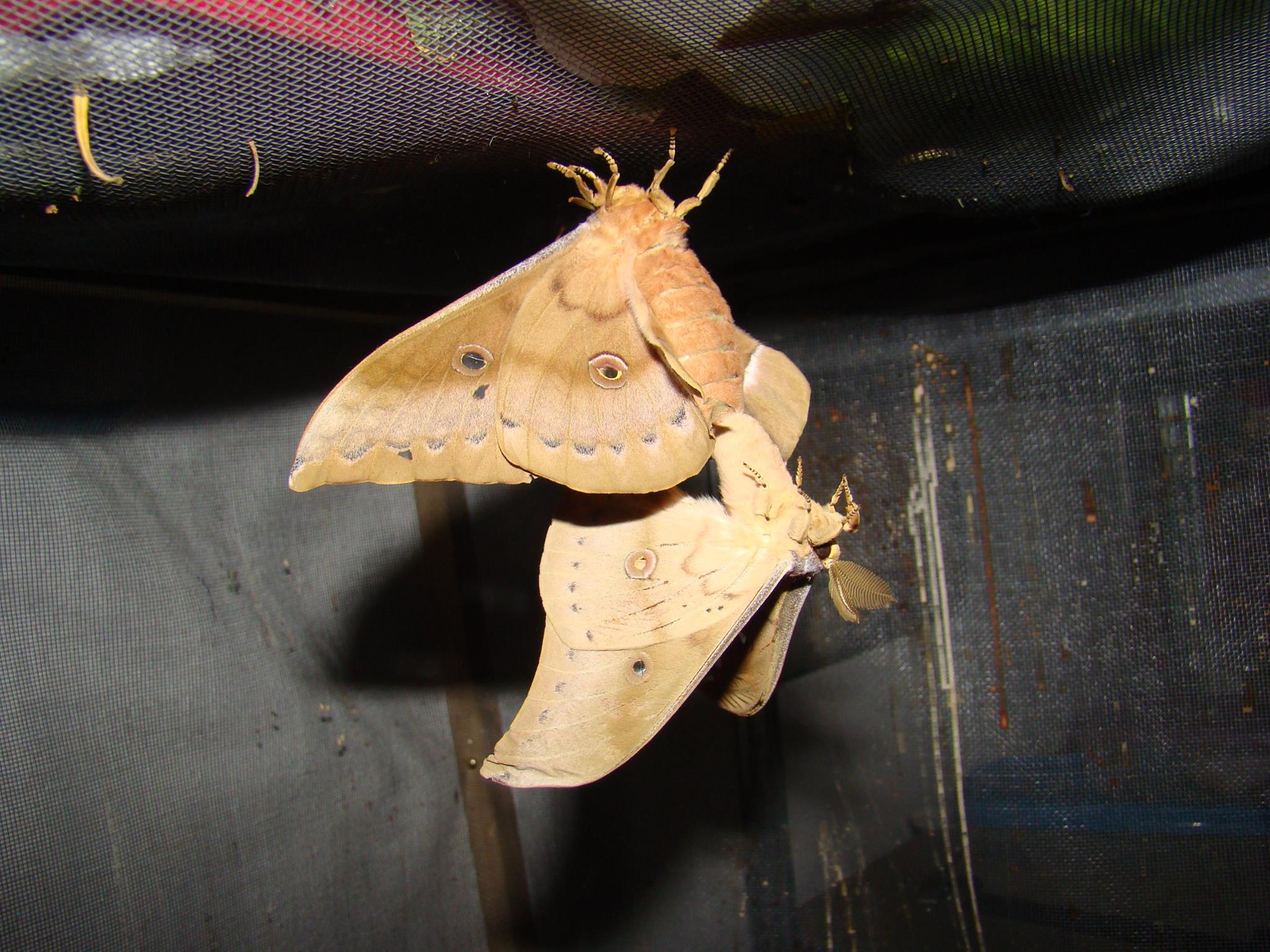 In captivity the moths are short lived; expect lifespans between 7 and 20 days and are incredibly easy to achieve. Keep the moths in a ventilated enclosure; made of netting or gauze. Mating happens in the darkness, at night – so keep them in a dark place. Males and females should pair up effortlessly.