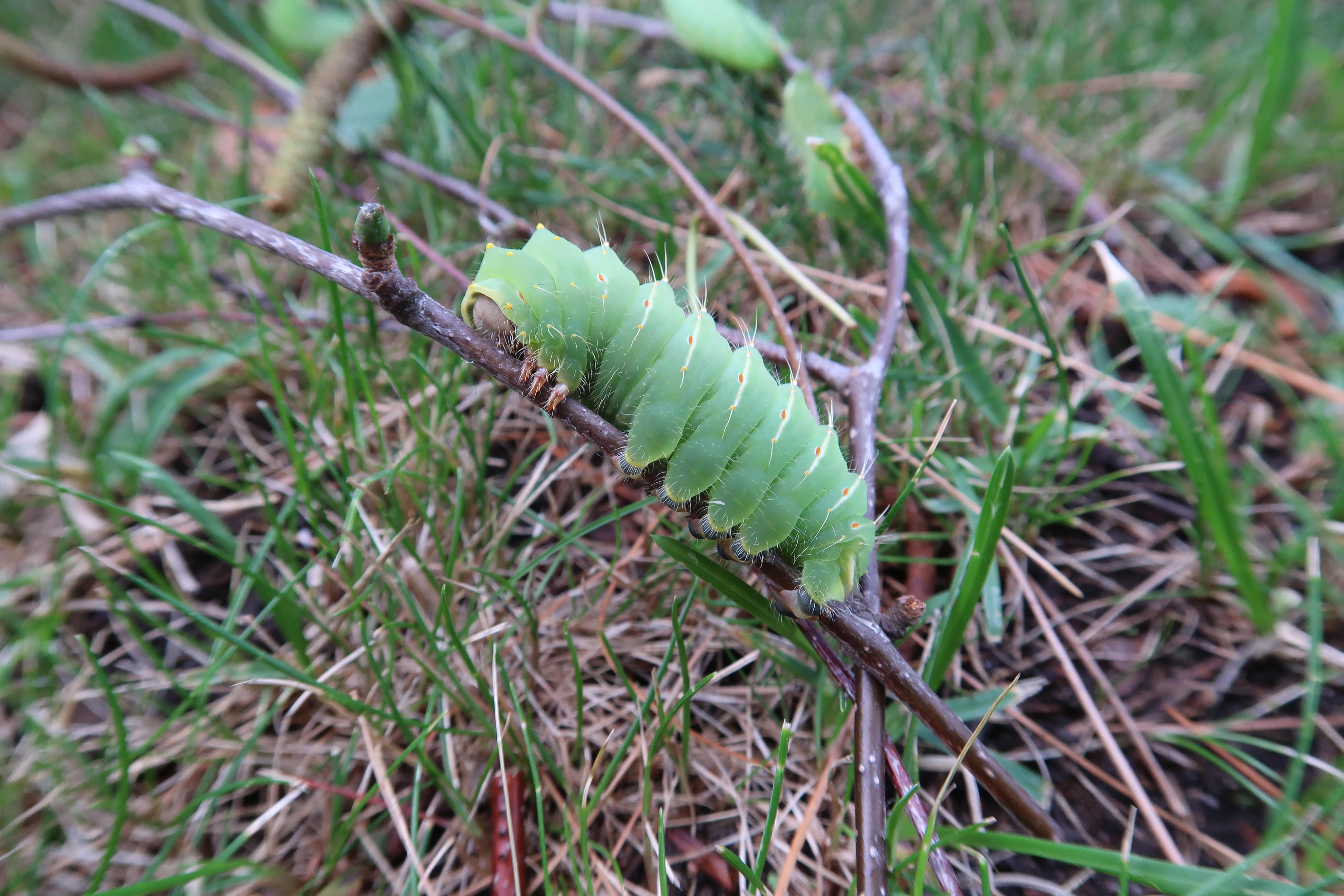 Before they spin cocoons, the caterpillars become a little restless and lose their interest in eating, and start wandering. In the wild, this is when the caterpillars are commonly found by people, since it is the only time they voluntarily leave their food plants (trees). They may wander for a day or two, before finding a good spot to spin a cocoon. Usually this is between the twigs and leaves of their host plant, but also between fallen leaf litter on the ground, on braches or crevices in tree bark and more. Some caterpillars turn dark green before pupating.