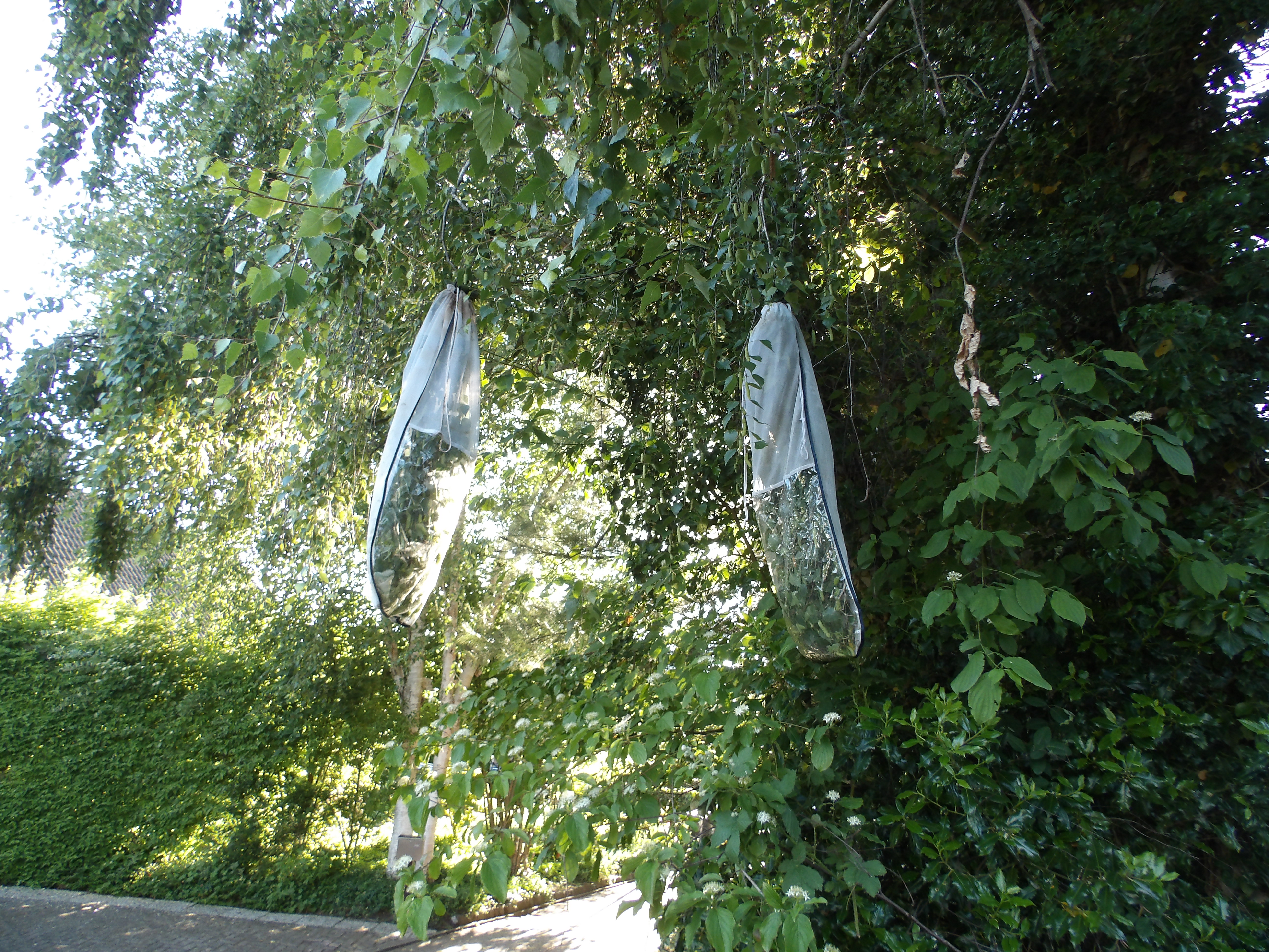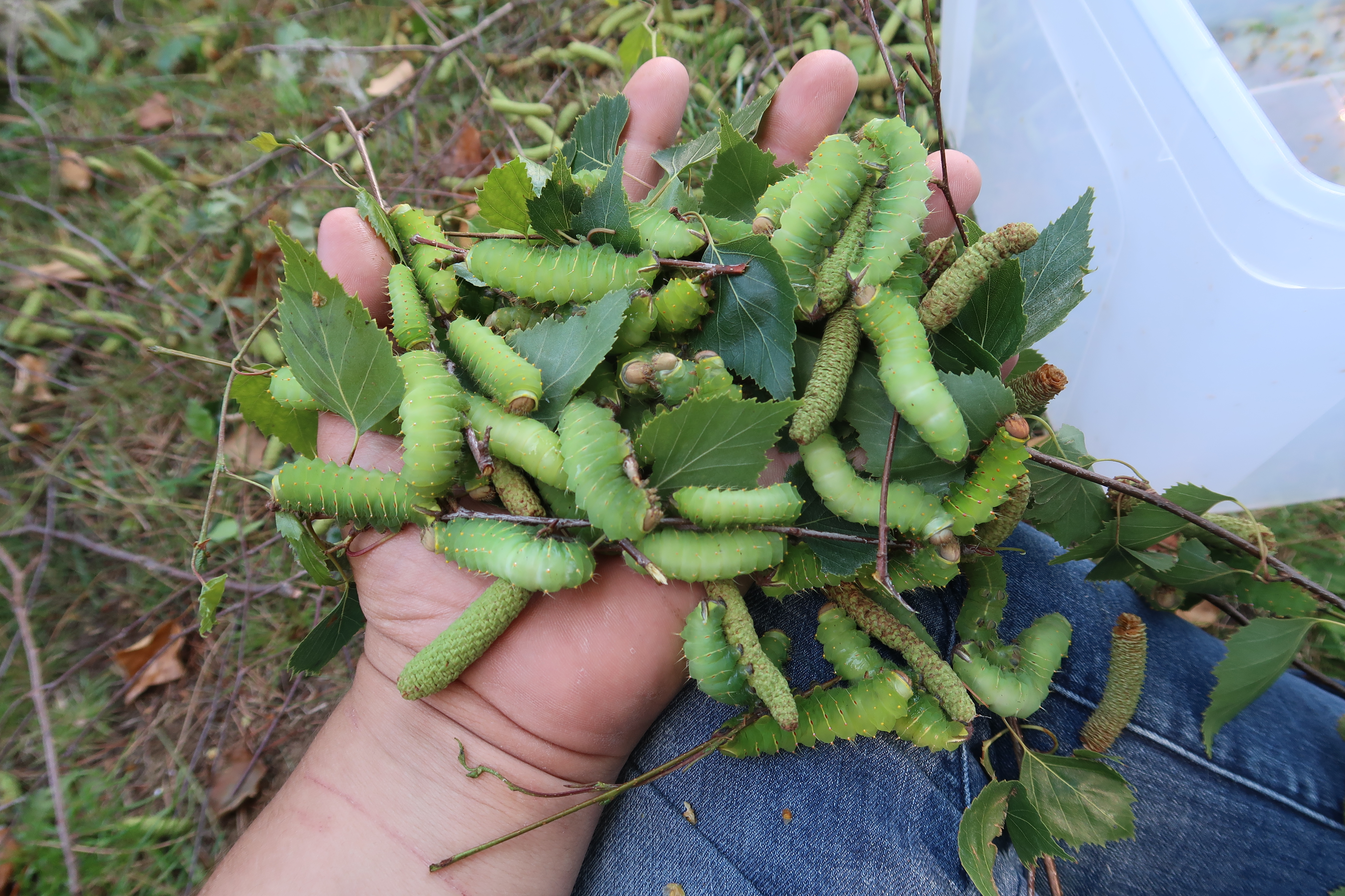Antheraea polyphemus caterpillars quaranted on Betula in rearing sleeves