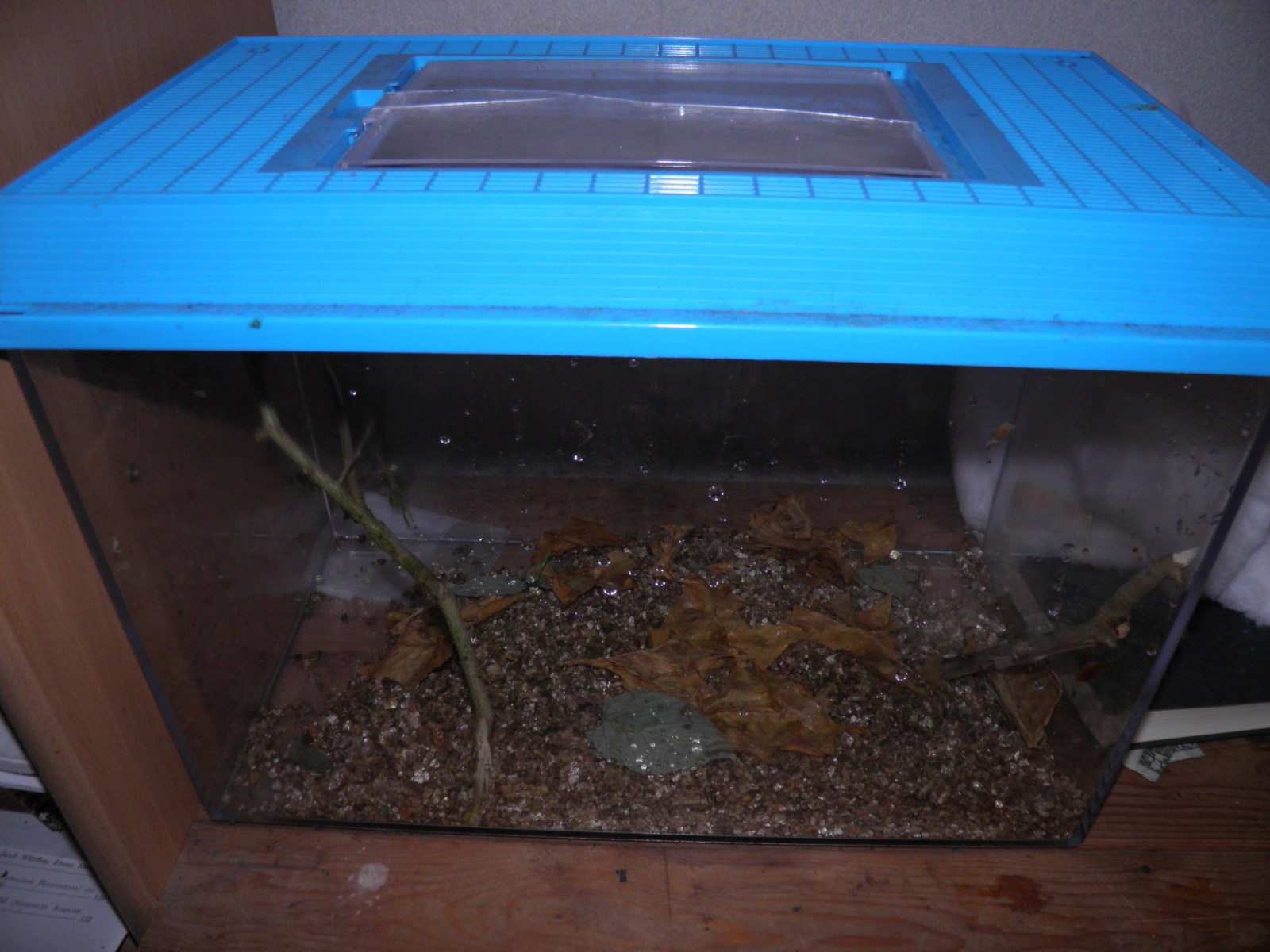 The plastic container I used to hatch Areas galactina. Note the water and condensation