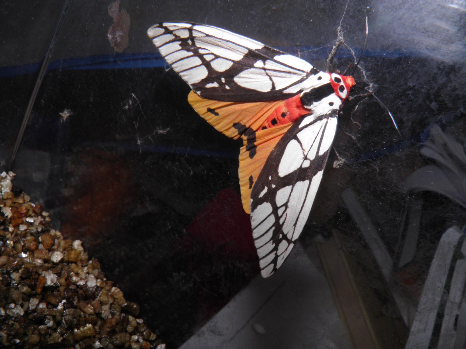 After feeding them well and keeping them clean for several months, the caterpillars will spin cocoons. From my experience, the pupal phase is the most difficult one. Raising the caterpillars is suprisingly easy if you’ve had some basic previous experiences with breeding tiger moths (Arctiinae). The pupae however fail to hatch or die in the hands of many breeders. This is because firstly, the pupae are extremeley sensitive to dessication, and will dry out and die in normal room conditions, and secondly because the pupae can become dormant as the moths seem to have one generation a year in most locaties. To make them emerge as adult moths, it is best to keep them cold during winter. Keep in mind that they are a (sub)tropical species and that frost would kill them. The cocoons of Areas galactina need a gentle but cold season that lasts several months – they are best overwintered between 5C and 10C (degrees Celcius). Keep in mind to store them humid but not wet during this time, to prevent them from drying out. They can be stored in vermiculite, leaf litter, well isolated plastic boxes with moss or wrapped in a towel that should be kept slightly moist. A basement can be used to overwinter them or a garden shed or fridge, just keep in mind to keep them frost free at all costs.