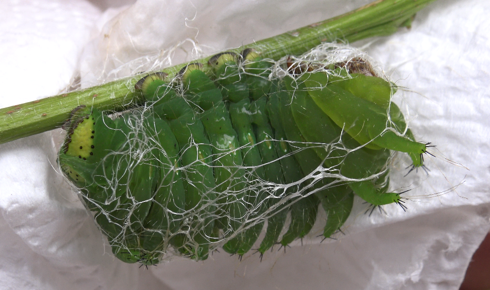 In the fifth instar, their tubercules become very long! It looks a little bit odd; but that’s what makes the larvae of this species attractive to study in captivity. The spines are quite harmless thankfully!