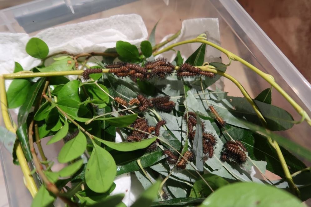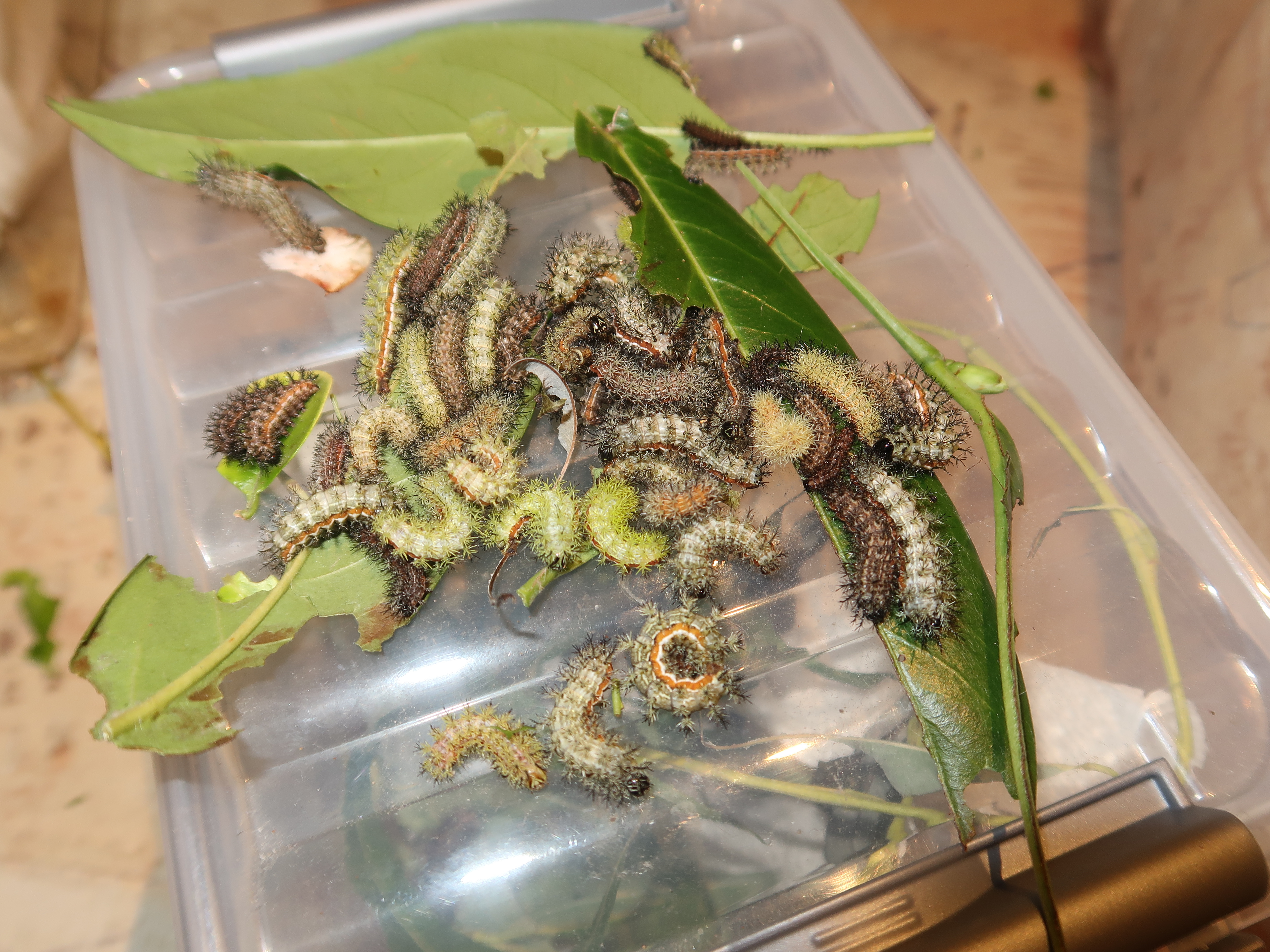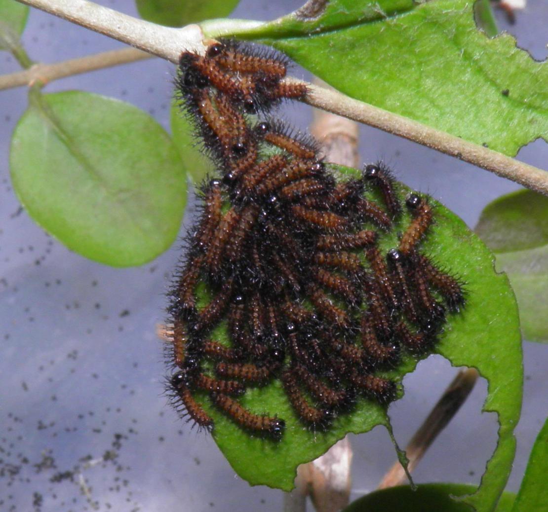 In instar 4 and 5, the larvae lose their social behaviours and disperse to live a solitary lifestyle. They stop living in groups and now want more space for themselves. Make sure not to overcrowd them! If a species goes from social to solitary, they suddenly require more space per caterpillar than they did when they were social (gregarious). Despite that, the species is still very resistant to living in high densities.