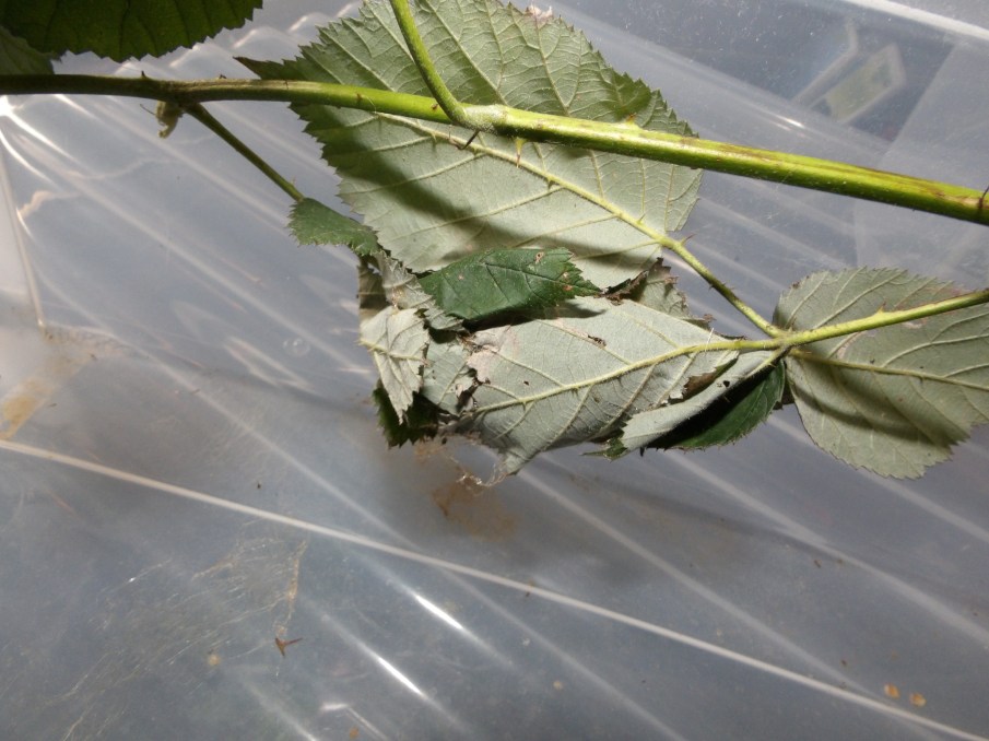 The young caterpillars of Automeris niepelti are small, yellow and gregarious (that means they are social and live in groups). Because I paired this species in the middle of winter (December) I was unable to test any food plants for them but bramble (Rubus fruticosus). Bramble is an evergreen plant in Europe that is accepted by a wide range of Automeris species, and some Automeris have been observed to feed on it in the wild too. It is also a Rosaceae – a relative of fruit trees such as cherry and apple, which are also commonly used host plants for the more polyphagous Automeris species. However, Bramble isn’t an optimal plant for most of them, and while it is possible to raise many Automeris species on it, it is often accompanied by a higher mortality rate. In winter in Europe most of the trees and shrubs drop their leaves, leaving only a limited amount of plants available for hobbyists. In conclusion, I had no other choice. However, I suspect that Automeris niepelti will feed on a big selection of food plants – potentially including oak (Quercus), beech (Fagus), willow (Salix), cherry (Prunus), apple (Malus), rose (Rosa), fig (Ficus), Guatteria, Heliconia, Hirtella, Pentagonia, guava (Psidium guava), Alfarao, Ocotea, several types of Fabaceae (Inga, Robinia) and more. This is based on the food plants used by its polyphagous cousins (A. larra, postalbida, egeus).