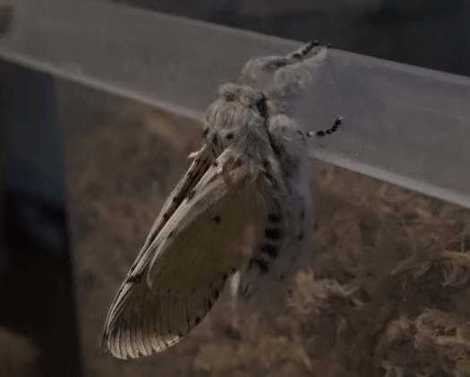 NOTE: In captivity, the species is able to tear up their own enclosures during this process! In some cases, moth breeders have reported larvae chewing holes in plastic containers and net cages, while looking for a place to spin a cocoon. Larvae that escape as a result can even damage wooden furniture by chewing holes in it as they attempt to spin cocoons!