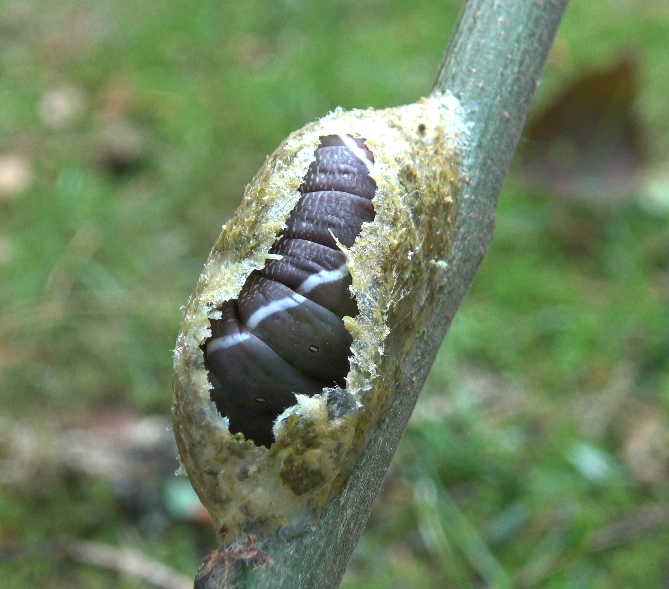Great succes! Do not bother to remove the cocoons from the branches; they are pretty much fused! Instead, just cut the branches at the points where the larvae have in fact pupated and remove the cocoons together with the branches.
