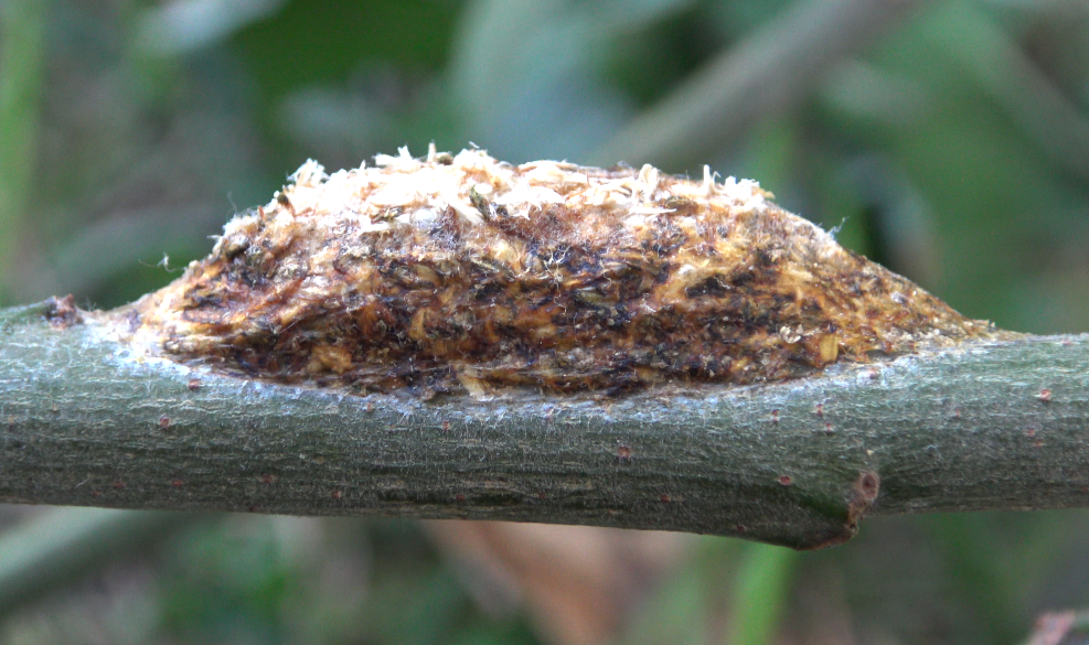 Once they are fully grown, the larvae will start spinning some of the thoughest cocoons in the moth world! While most species spin cocoons made from silk, Cerura vinula has a different strategy. They will start chewing up tree bark, and incorporate the wood pulp into the silk they excrete! This results in very strong papery cocoons.