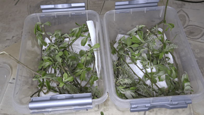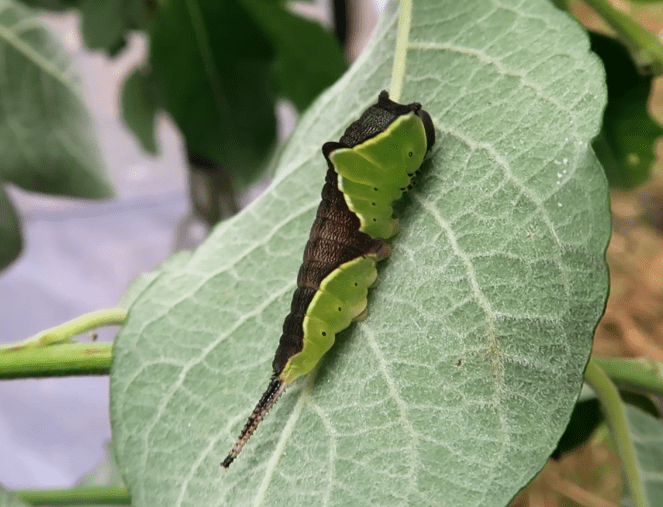 The second and third life stage can also be reared in plastic boxes – just make sure to upgrade them to larger boxes each time – and make sure to ventilate their enclosures. It is also possible to raise them in ventilated cages, but make sure the indoor conditions are not too dry (indoors can dry out some species of larvae). Populus or Salix can be cut and placed in bottles or cans containing water to keep them fresh, so larvae can feed from the foliage.