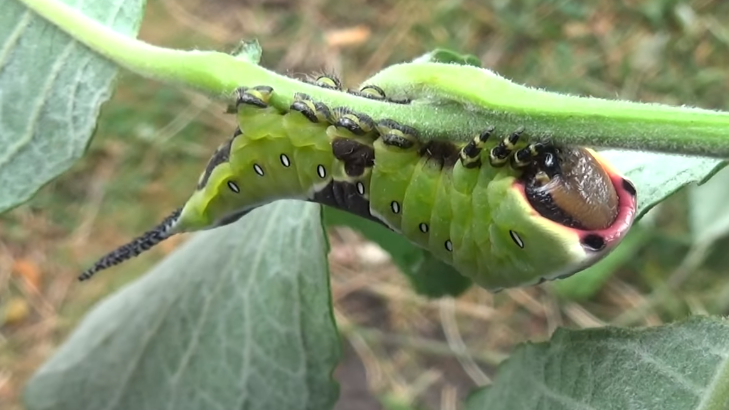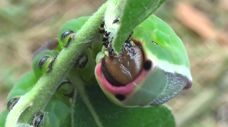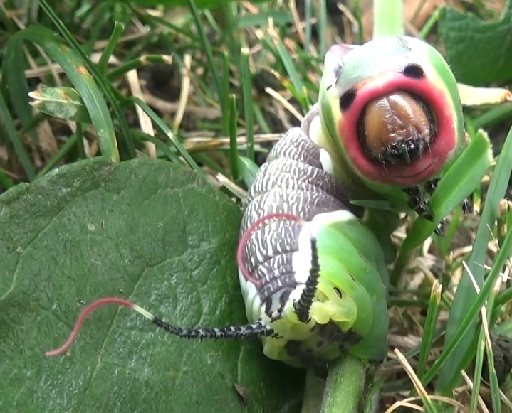 This threat display is often accompanied by the larvae turning its face towards the perceived threat, exposing the bright red coloration near their head capsule. And if that isn’t enough to intimidate any potential enemies they also have a gland under their face that allows them to spray formic acid!