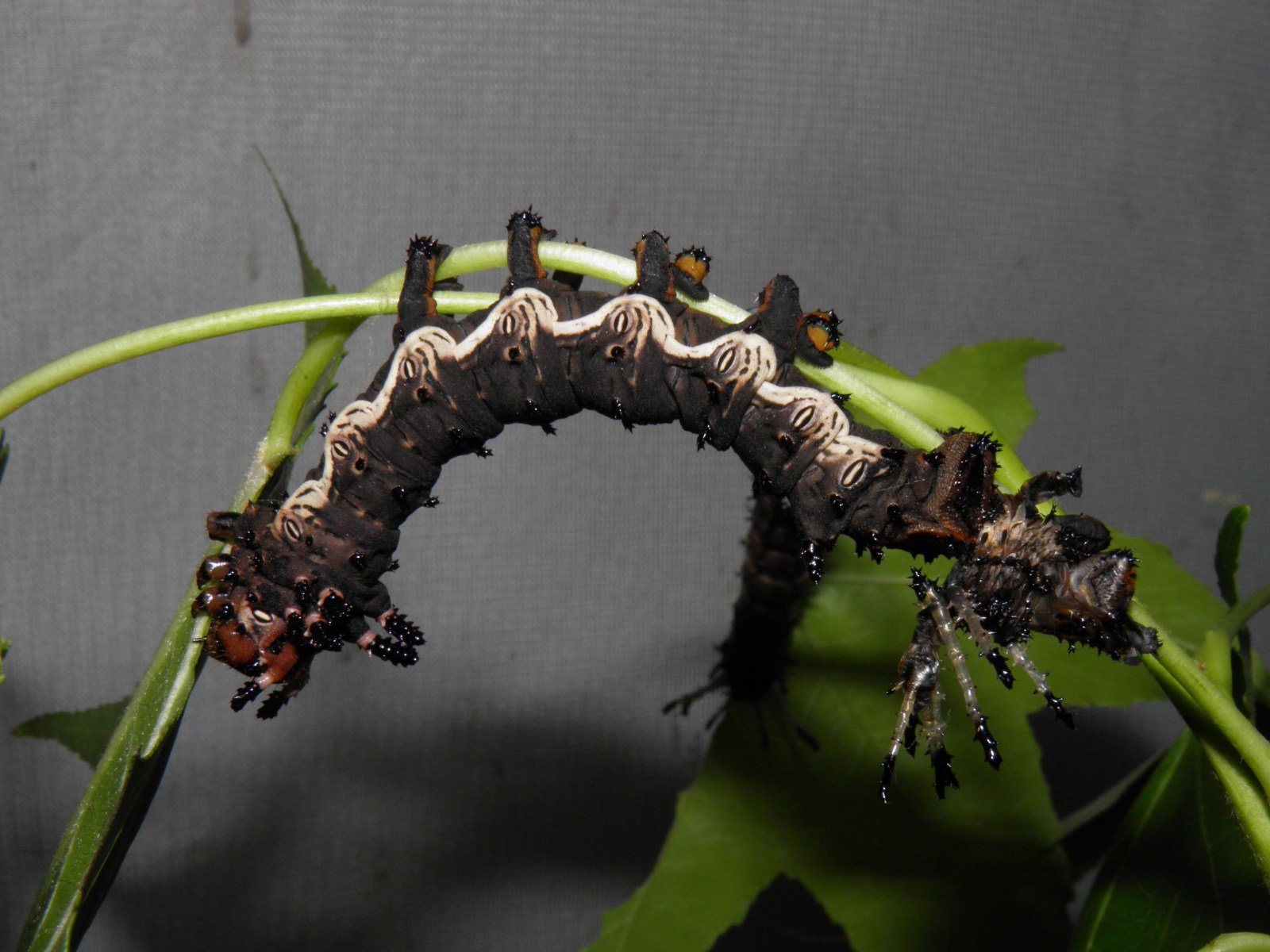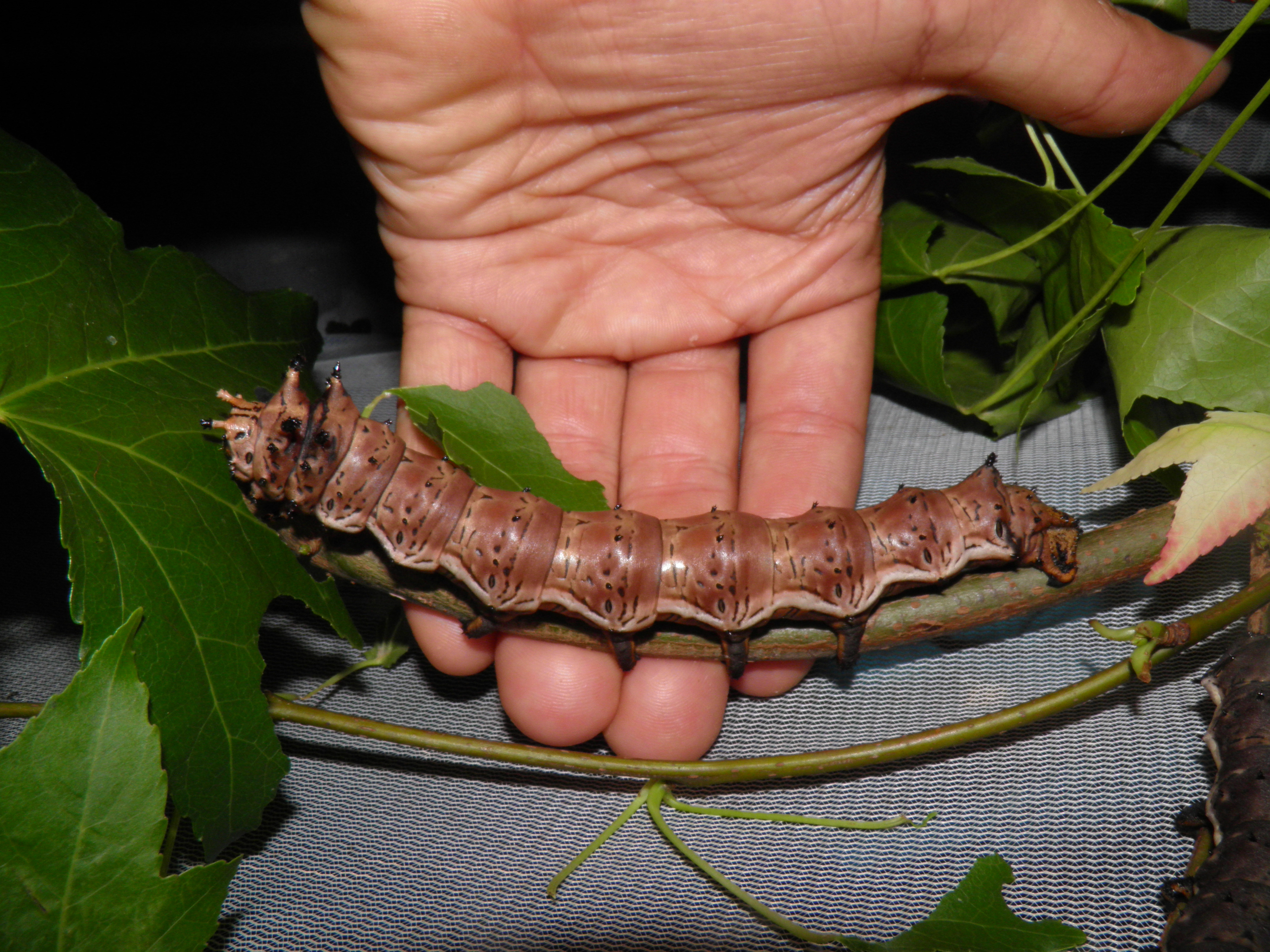 Almost fully grown caterpillar of Citheronia azteca, raised on Liquidambar