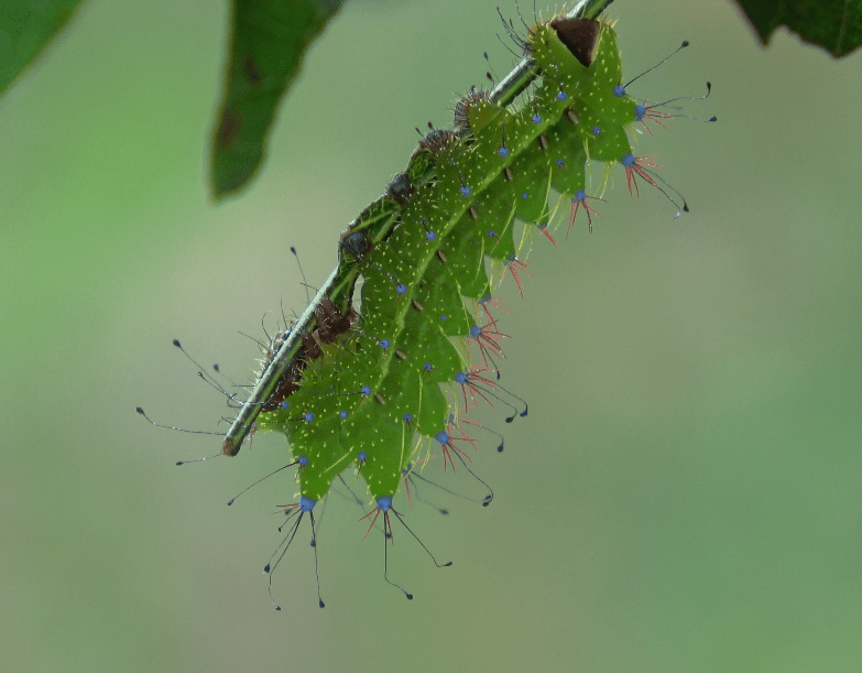 The larvae of Copaxa parvohidalgensis have an unusual blue-ish shade; I can only describe it as something in between mint-green or cyan.