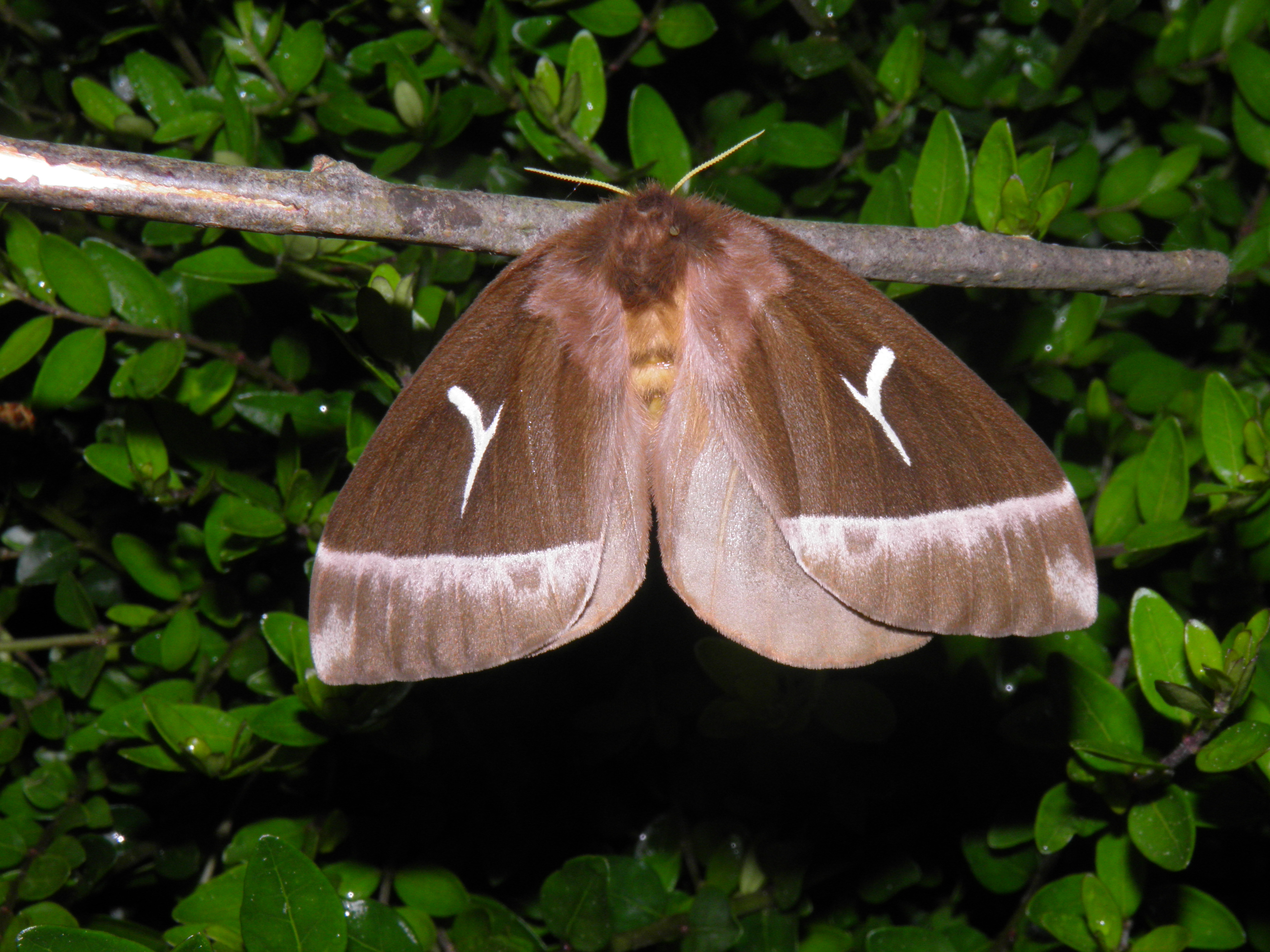 Not much is known about the Saturniidae moth Dirphia brevifurca. It is found in Peru, Ecuador and Bolivia where it feeds on a broad range of plants – the caterpillars are polyphagous. Males have bright orange hindwings, a whiteish border around their forewings and two white ‘hieroglyphic’ markings. Females are larger, more dark and have reduced white scaling, but are shown to have the same type of markings.