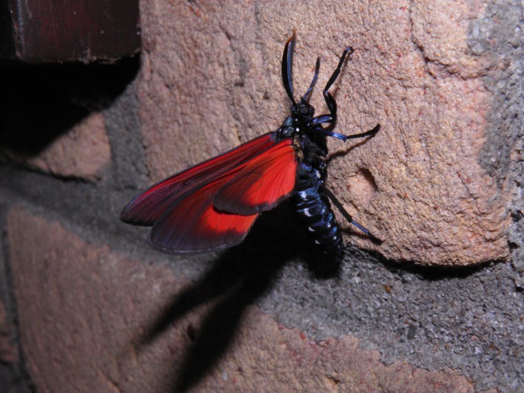 All in all, Empyreuma pugione is a beautiful moth that can easily be bred, as long as they can be given the correct lightning and food as adults. The red wings of the moth look similar to many Pompilidae wasps, perhaps a form of mimicry. Either that or an aposematic warning that signals their toxicity to predators.