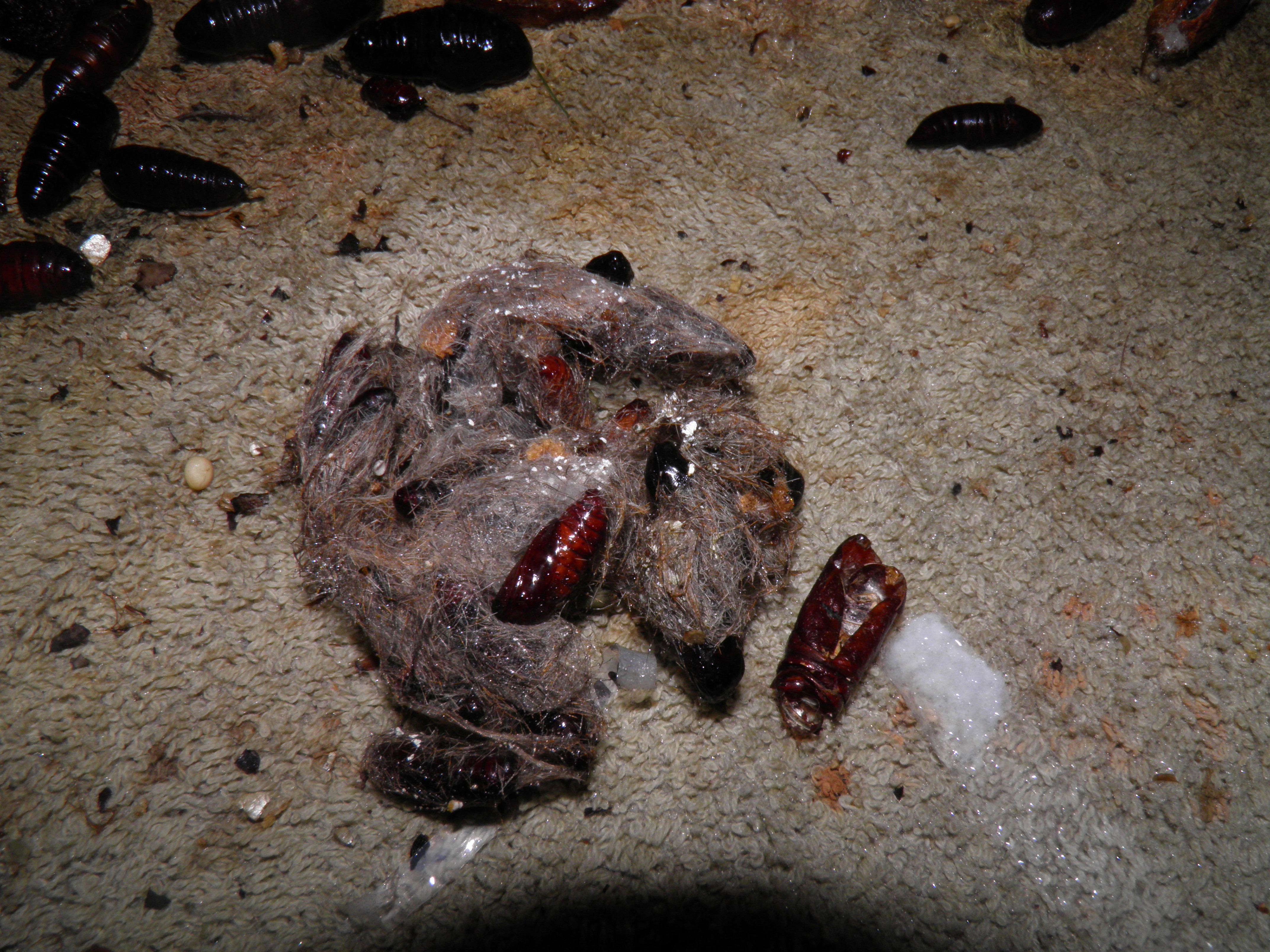 The caterpillars are fully grown in about a month or longer (depends on temperature aswell). They tend to seek out the same spots to cocoon, perhaps because all of them are attracted to the same sheltered spots, or perhaps because this is a form of communal behaviour. In Punta Cana, many cocoons can be found spun together on walls and gates.