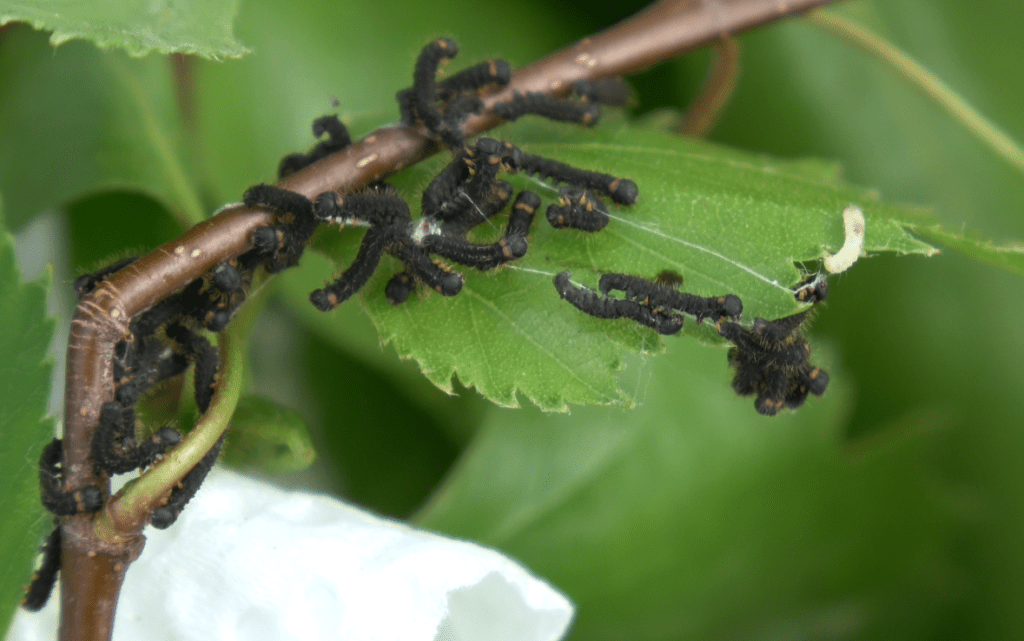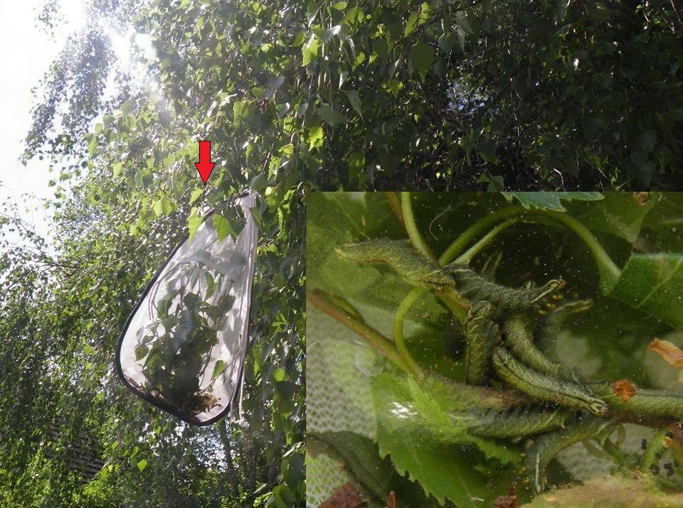 If you choose to sleeve the larvae, choose a healthy birch tree (Betula). For convenience, a younger tree is easier (but mature trees are acceptable too) and add the larvae to a rearing sleeve. Some sunlight is acceptable, but make sure the larvae are not fully exposed to the sun all day long (that’s a good way to cook them alive!). Hang them in the shaded or semi-shaded side of the tree.
