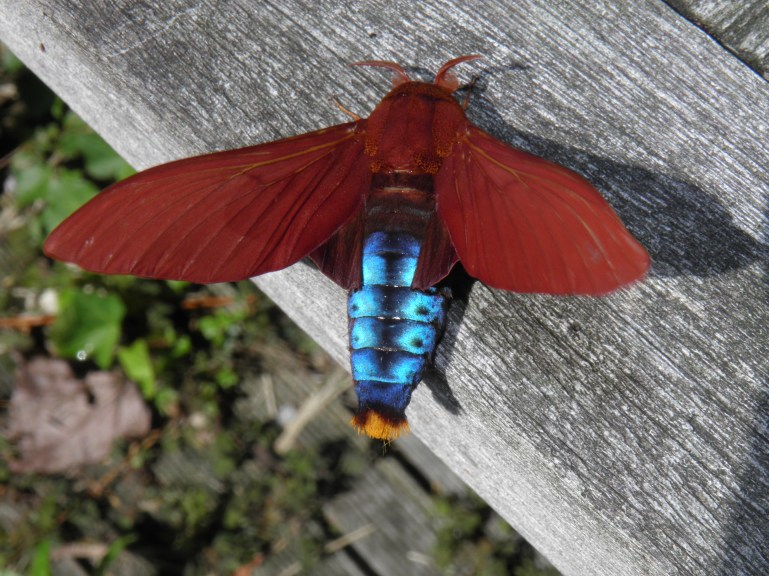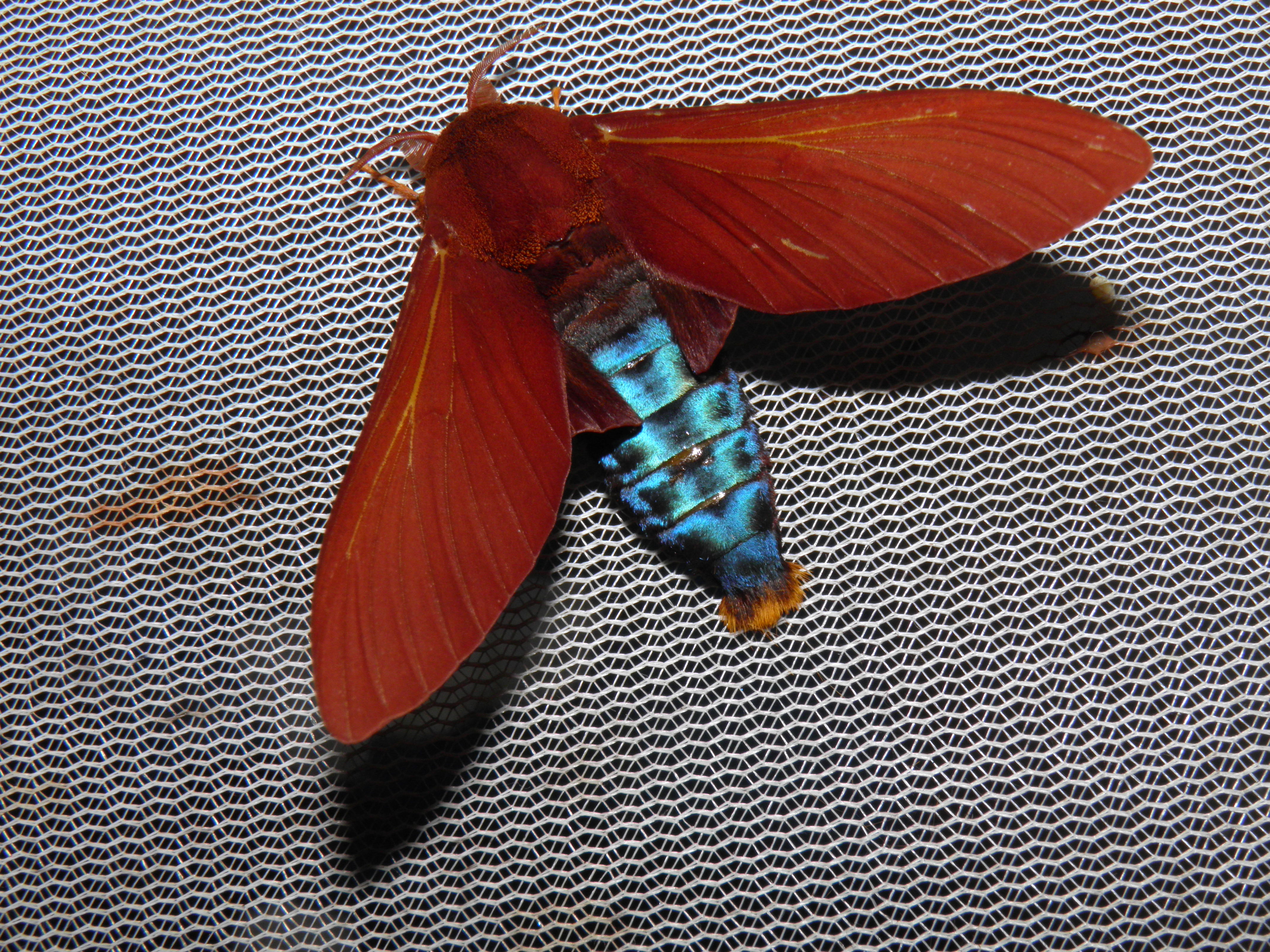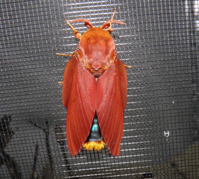 An adult male of Gonometa nysa: wonderful, big .. and with a shiny blue butt.