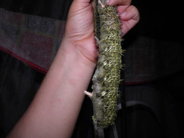 In fact, one of my friends in the Netherlands made the mistake of rubbing his eyes with his hands after touching a larva. Yes, one of the spikes made it into his cornea and had to be removed by a doctor, rendering him blind for a week. So please beware if you are rearing Gonometa (I think any member of this genus may have these spines!).
