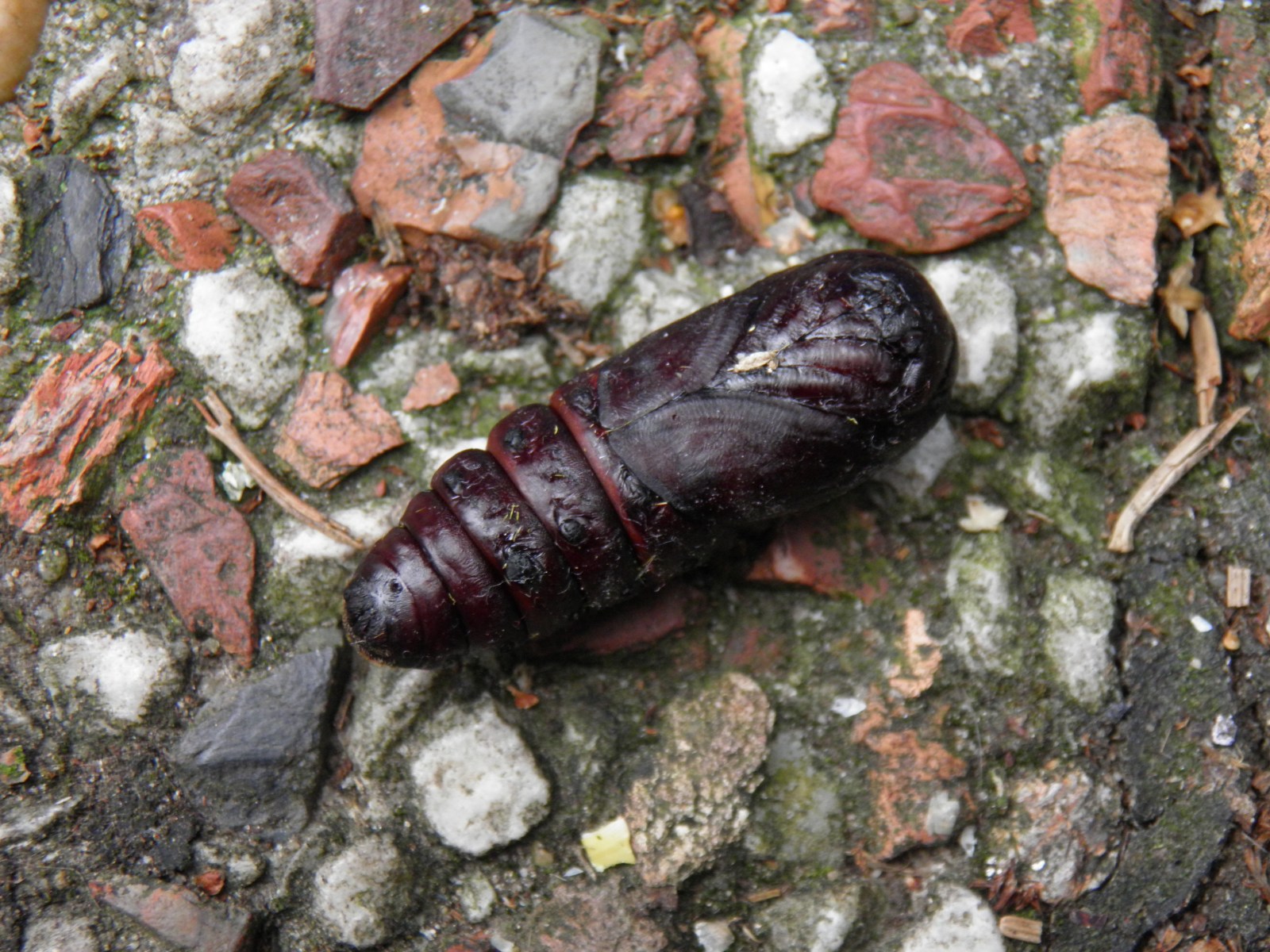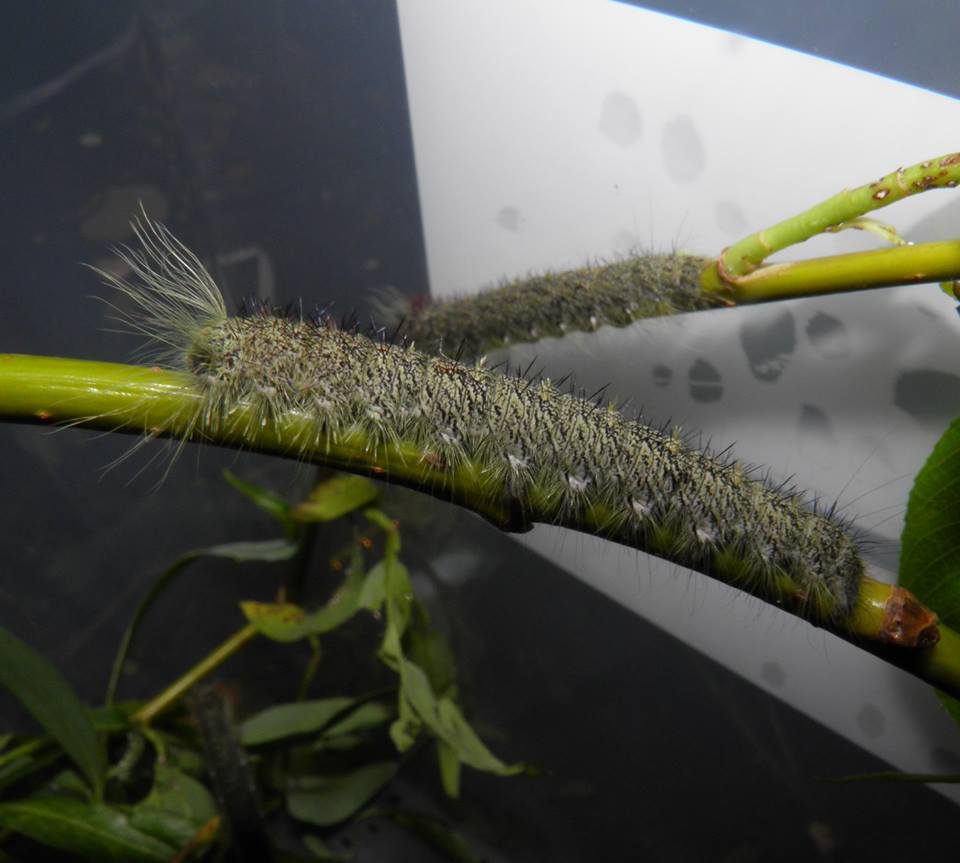 As they grow bigger and bigger, the caterpillars will reach impressive sizes. They seemed to span between 10 and 16 centimetres; I assume size difference is because larvae that will become female moths are larger than the males.