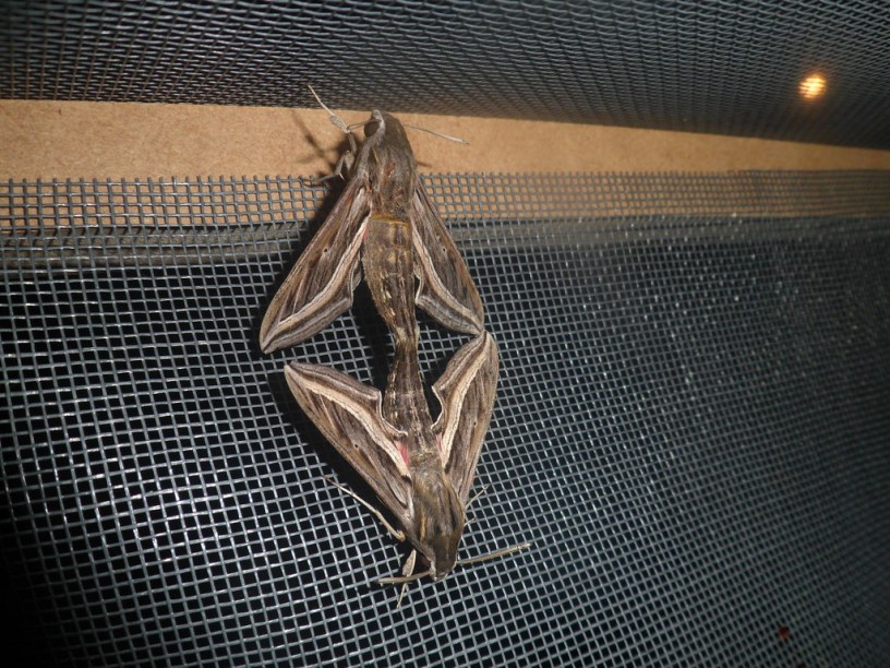 Copula of Hippotion celerio in captivity; this species is eager to pair