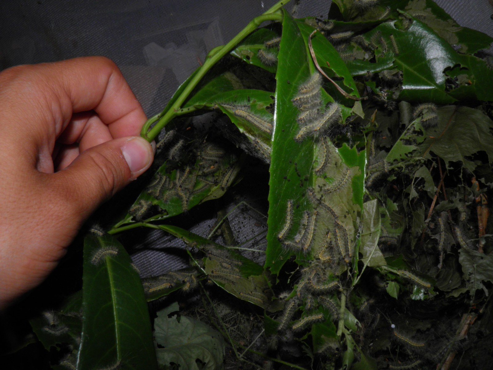 Hyphantria cunea fourth and fifth instar on Prunus laurocerasus