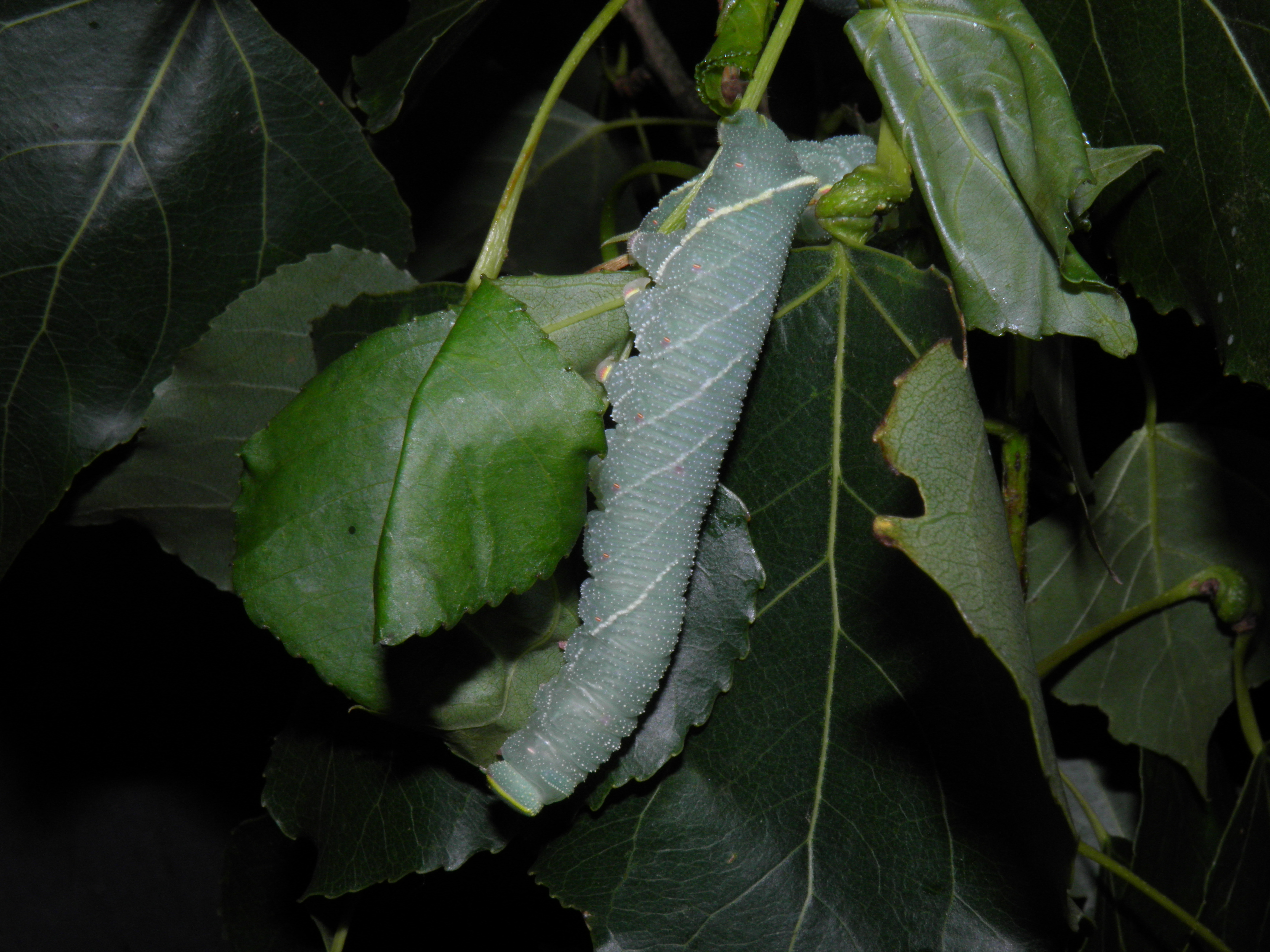 Genus Laothoe can be distinguished from other similar hawkmoths by the scalloped wing edges and the unusual resting position where the hindwings are placed higher than the forewings. The caterpillars are green but variable; they vary from lime green to mint green to blueish green. They can have yellowish ‘warts’ that cover their bodies. Some forms have very noticable bright red dots – these spots help camouflage them in sick Populus trees that are infected with kinds of leaf-spot fungus such as (Marssonina sp.) that often affects poplar and makes their leaves appear spotted. Fully grown caterpillars descend to the floor and burrow in the soil to pupate underground. Sometimes they pupate in crevices at the base of the host tree.