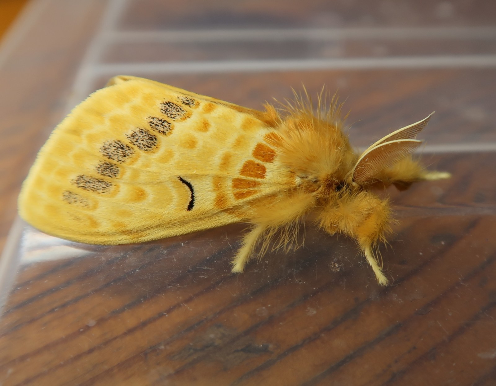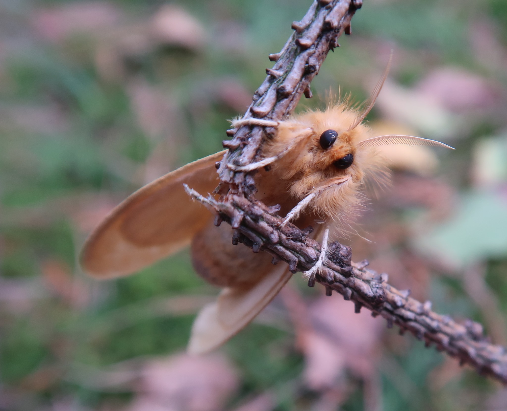 The males of this species are extremely cute, and look like wooly bunnies! A spectaculair moth to observe.
