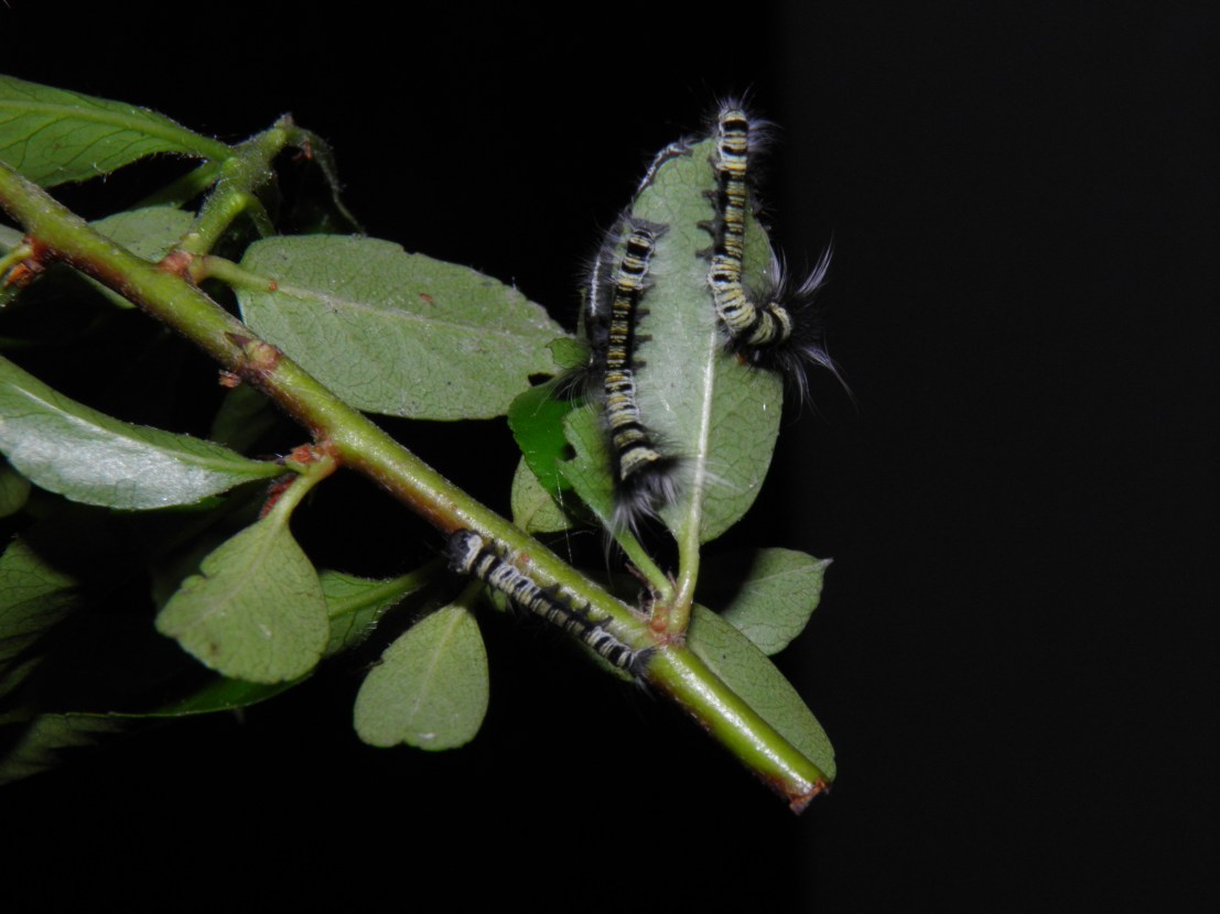From the eggs, small white larvae with black stripes and large grey tufts hatch in a few weeks. The larvae are solitary and will wander a lot before settling down in the vegetation to start feeding on their host plants. The small caterpillars can be raised in airtight plastic containers.