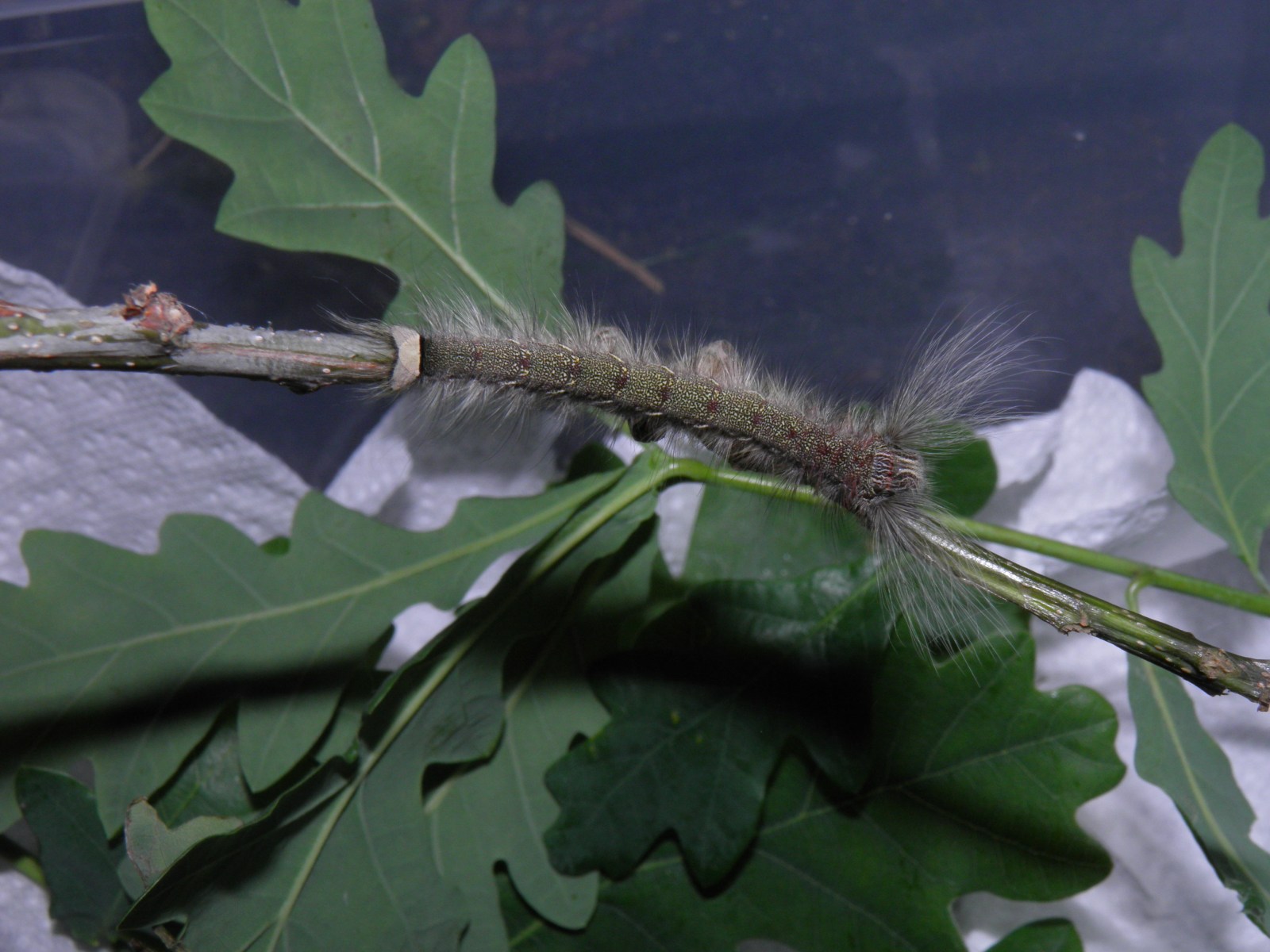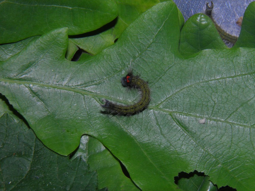 The third instar is very similar to the second instar and shows the same red markings (although reduced), blue head capsule. However, the third instar seems to be more polyphagous: they accepted Quercus (oak) and Rubus (bramble) while the first and second instar did not. Perhaps, as they mature, they become more ‘open minded’ and exihibit a higher degree of polyphagy. The first three instars can be raised in plastic boxes without much problems, they seem relatively tolerant of less ventilation and higher humidity.