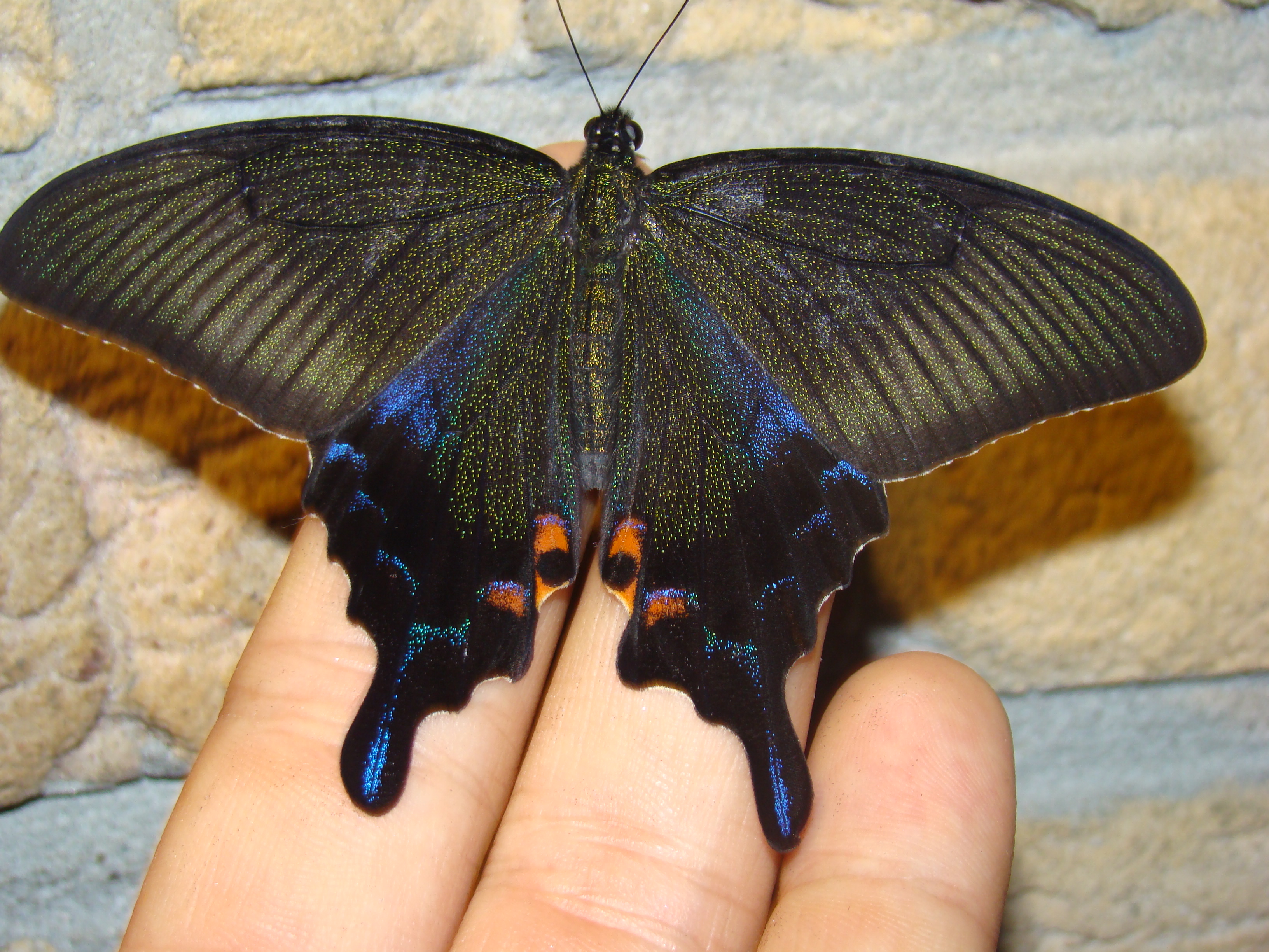 Papilio dehaani, the Chinese peacock swallowtail, is an Asian Papilionidae species with amazing metallic colours. This shiny species looks like it has been sprinkled by small iridescent scales.