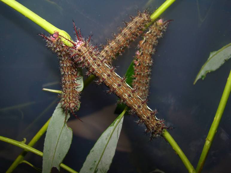 The caterpillars of Lemaireodirphia albida have a painful sting, even significantly more painful than Automeris from my experience. The larvae are brown and covered with greenish/reddit setae that have venomous, toxic spines. In captivity they accepted Salix and Quercus, but possibly they will feed on a wider range of plants; thus experimenting will be worthwhile.