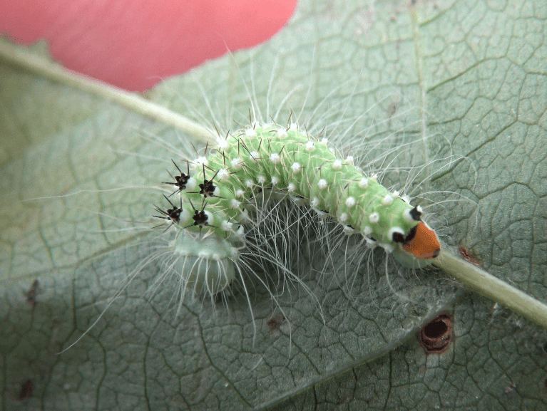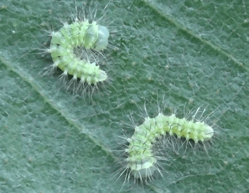 Rinaca lindia is not difficult to rear in captivity, even under moderate temperatures; personally I have raised it on Prunus padus and Betula papyrifera without much complications. With some basic experience, you can raise them too! The larvae have long, white, bristly hairs, a pale green cuticle, white setae, and interestingly – false eyespot like markings near their rear end.