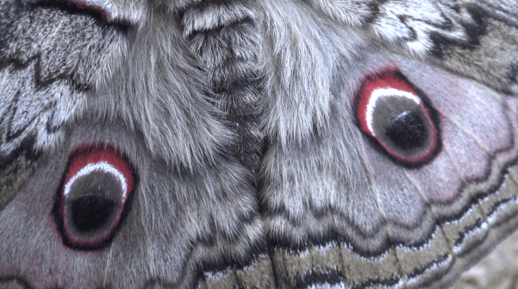 Females have thin, stumpy antennae, while males have broad and feathered antennae. Males have more triangulare and slender wings, with sharper edges. Both sexes have incredibly beautiful, deep red eyespots surrounded by subtle pink scaling; it’s almost as if they’re blushing.