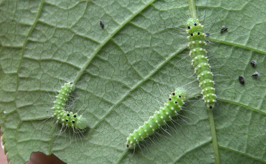 Upon hatching, the first instar caterpillars are pale green with tiny black dots on their backs, and white hairs. After that, the young larvae can be transferred into plastic container and raised on the leaves of plants. They’re willing to feed on Poplar tree (Populus), Deciduous types of cherry (Prunus sp. such as P. padus), Sea-buckthorn (Hippophae sp.), Honeysuckle (Lonicera sp.), Walnut (Juglans regua), Willow (Salix sp.), Maple (Acer sp.) – and perhaps even more host plants. Any non-evergreen (and even some evergreen) type of Rosaceae could be an option.