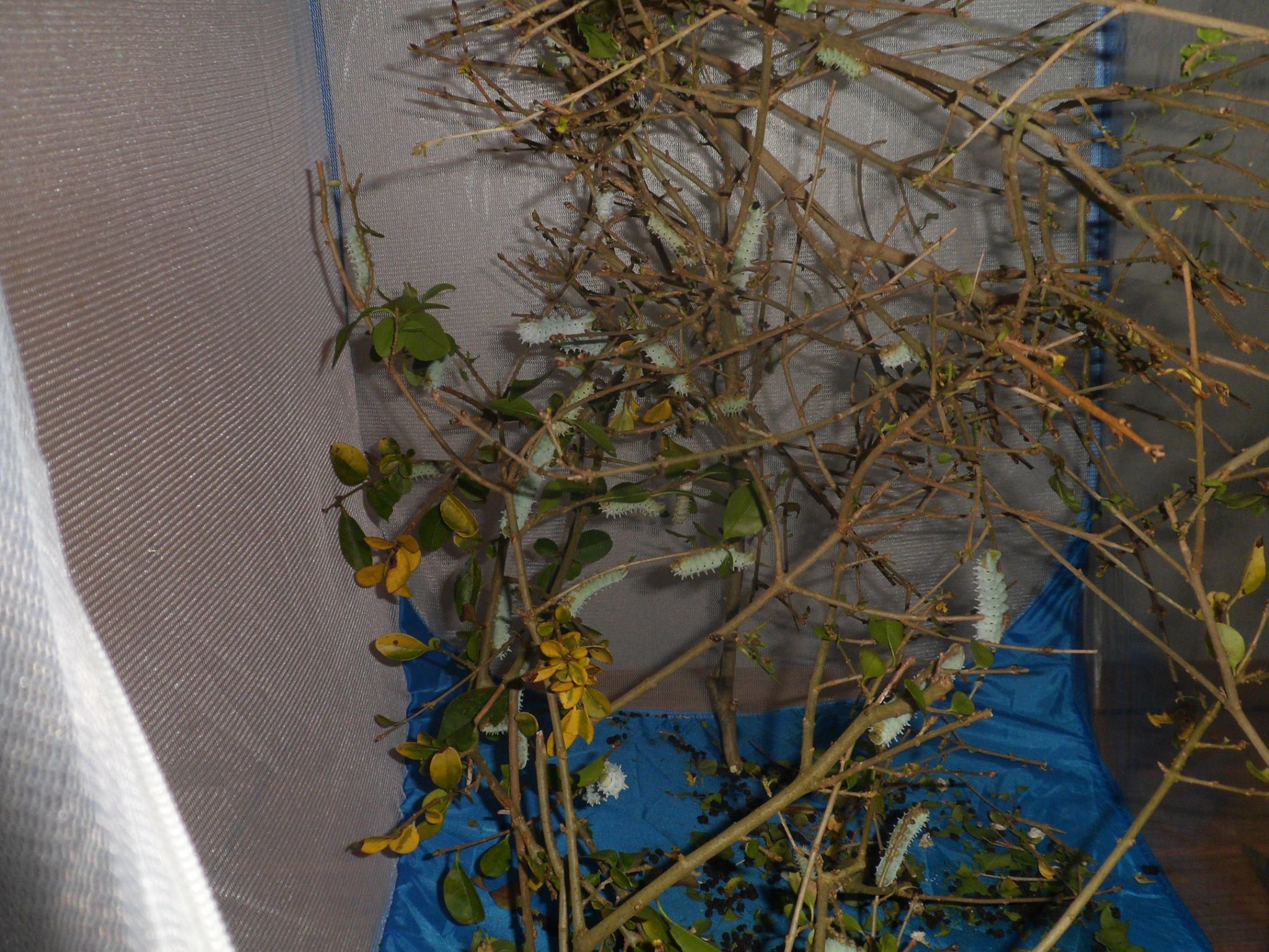 However, after a few weeks of rearing them the larvae will grow bigger and their needs will change. While the first three instars are gregarious (communal) and can be reared in high density, the final two instars (L4 and L5) become solitary and require much more privacy (space!) and ventilation. In fact, putting many fully grown caterpillars of Samia ricini together in one container will result in viruses and infections that will wipe them all out. From this point they should be kept in airy cages, or in a big container with a lid that is replaced with netting (or any kind of material that allows ventilation and air flow).