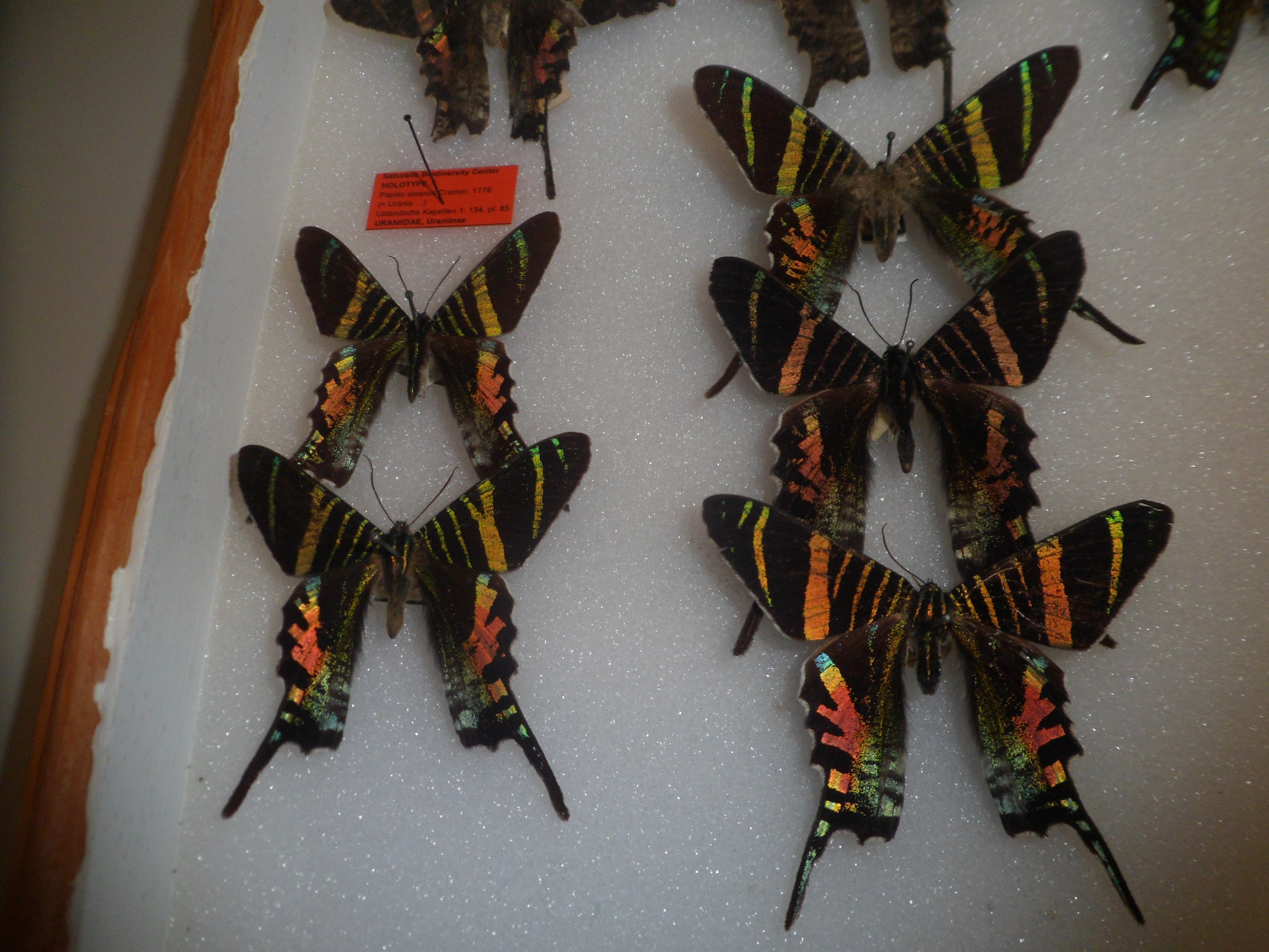 Urania sloanus was a highly iridescent day-flying moth – it’s iridescent colours, while looking attractive to humans, also had a more important function: they were a warning to potential predators, signalling the fact that the moth is in fact toxic.